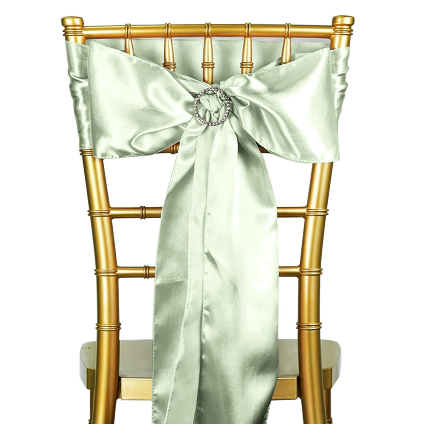 Crafted from premium satin, our Sage Green Chair Sashes are designed for durability and reuse. The high-quality material ensures that these sashes withstand the rigors of multiple events, maintaining their luxurious look and feel. This makes them a cost-effective choice for event planners and hosts alike.