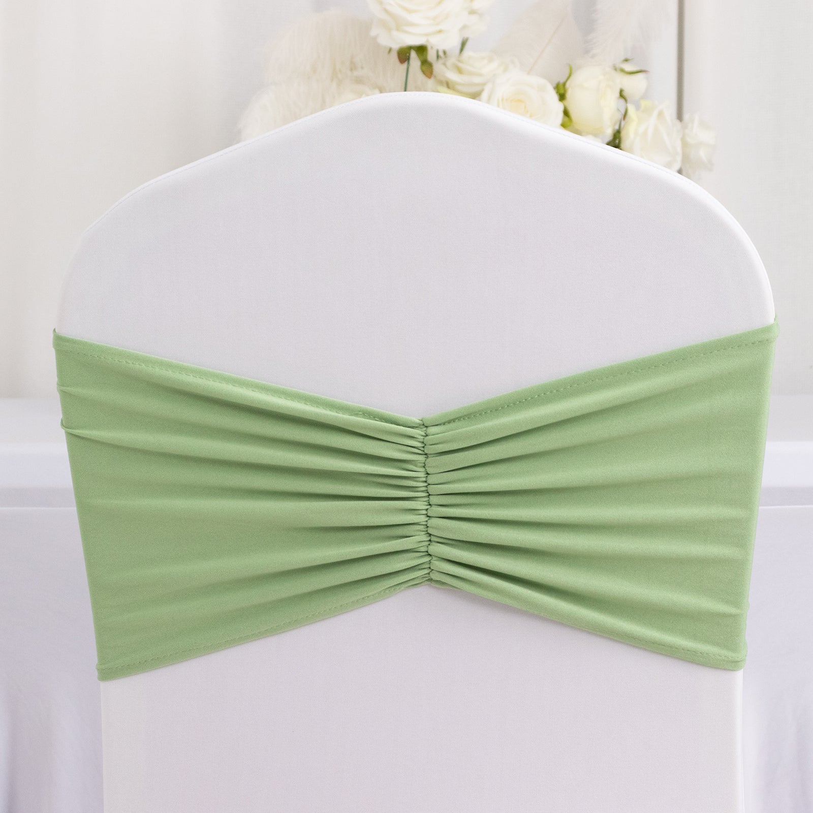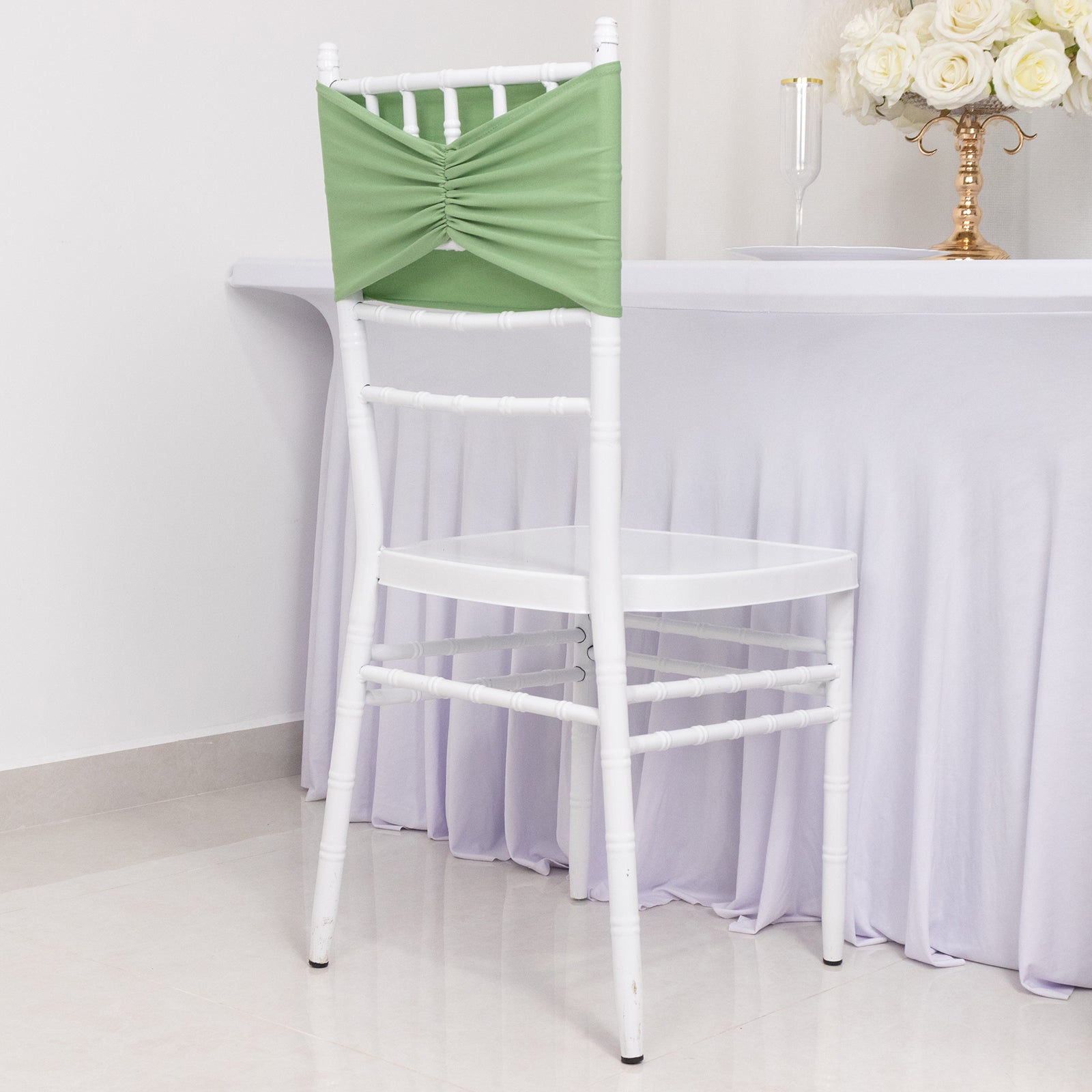 5 Pack Sage Green Wide Ruffled Fitted Spandex Chair Sash Band - 8"x13"