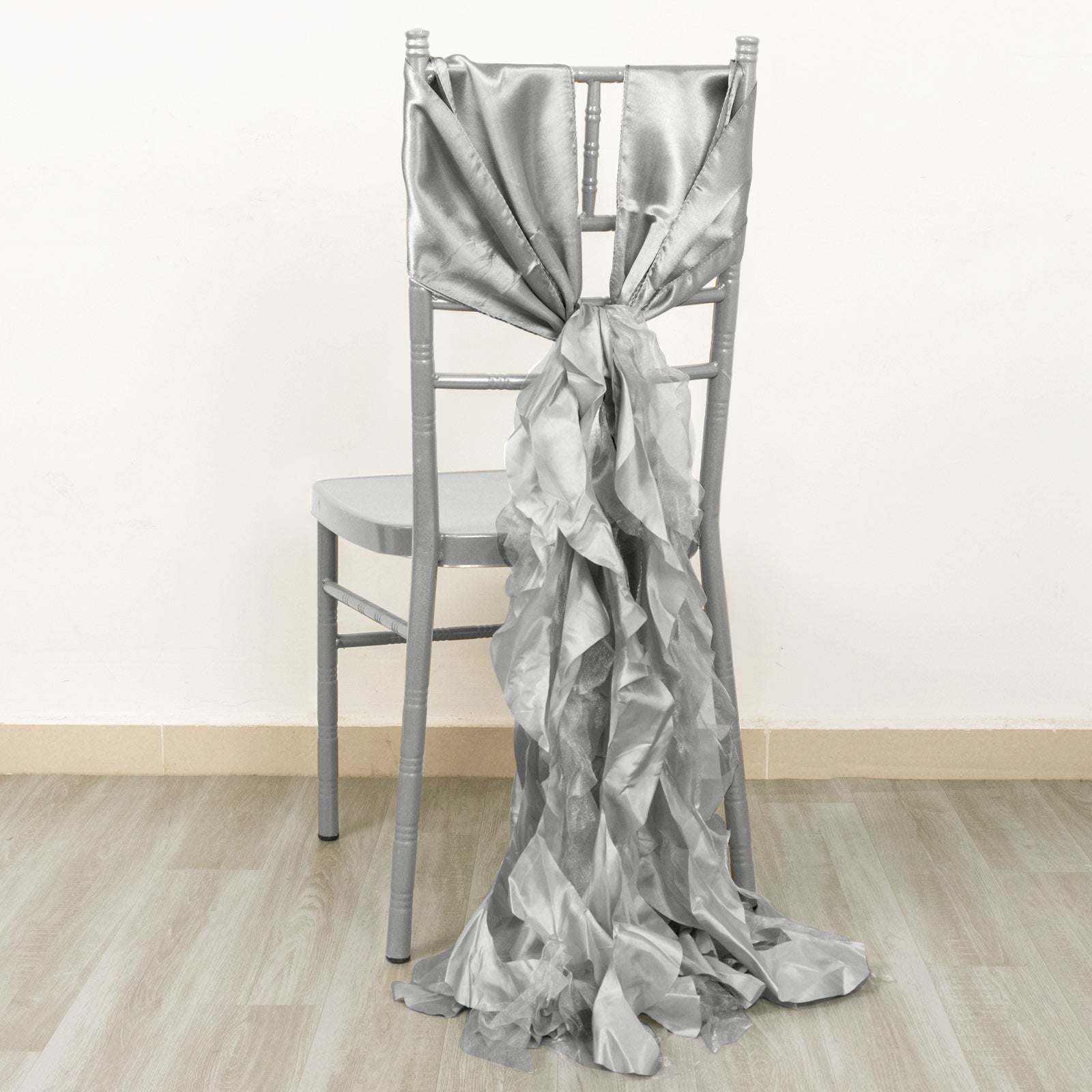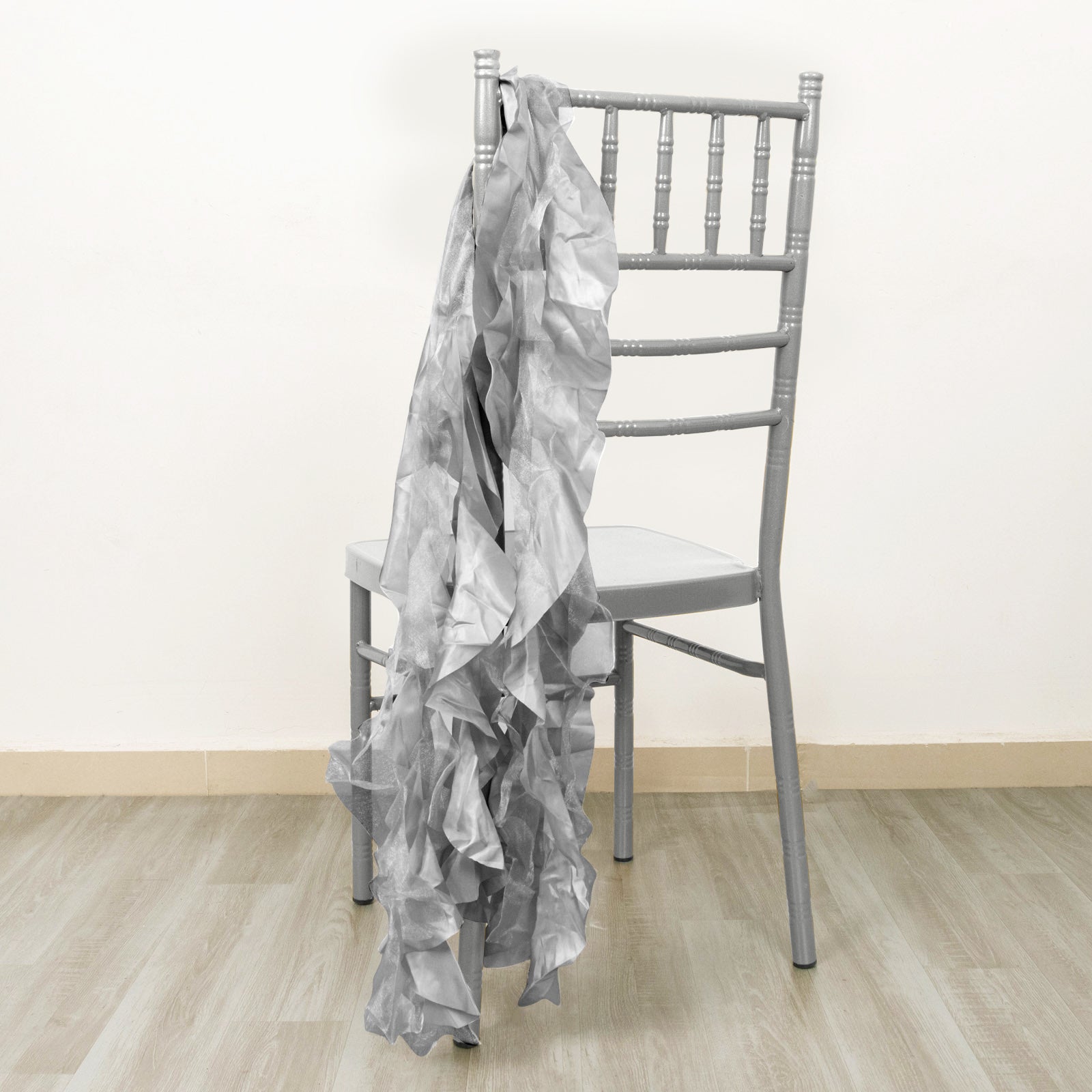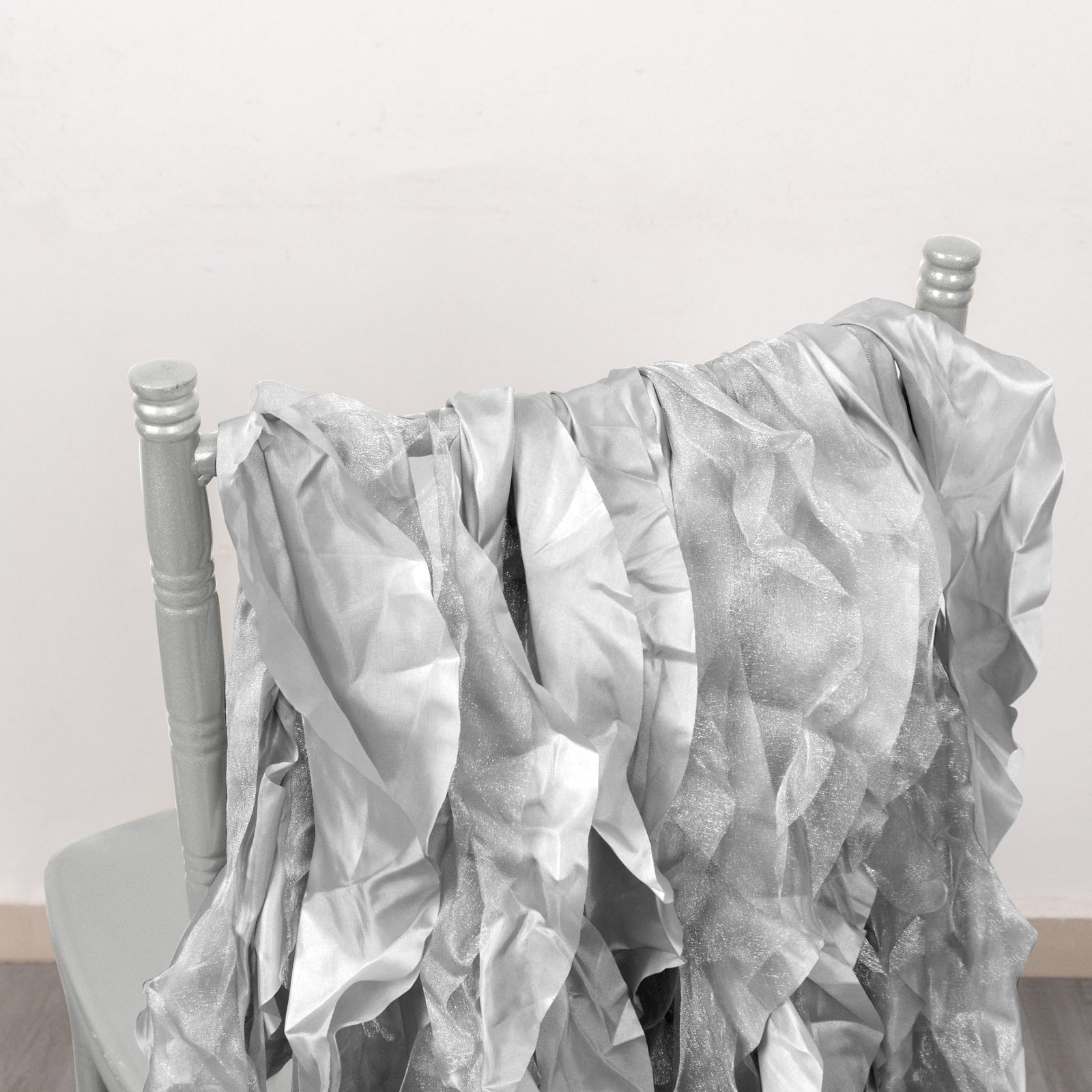5 Pack Silver Curly Willow Chiffon Satin Chair Sashes