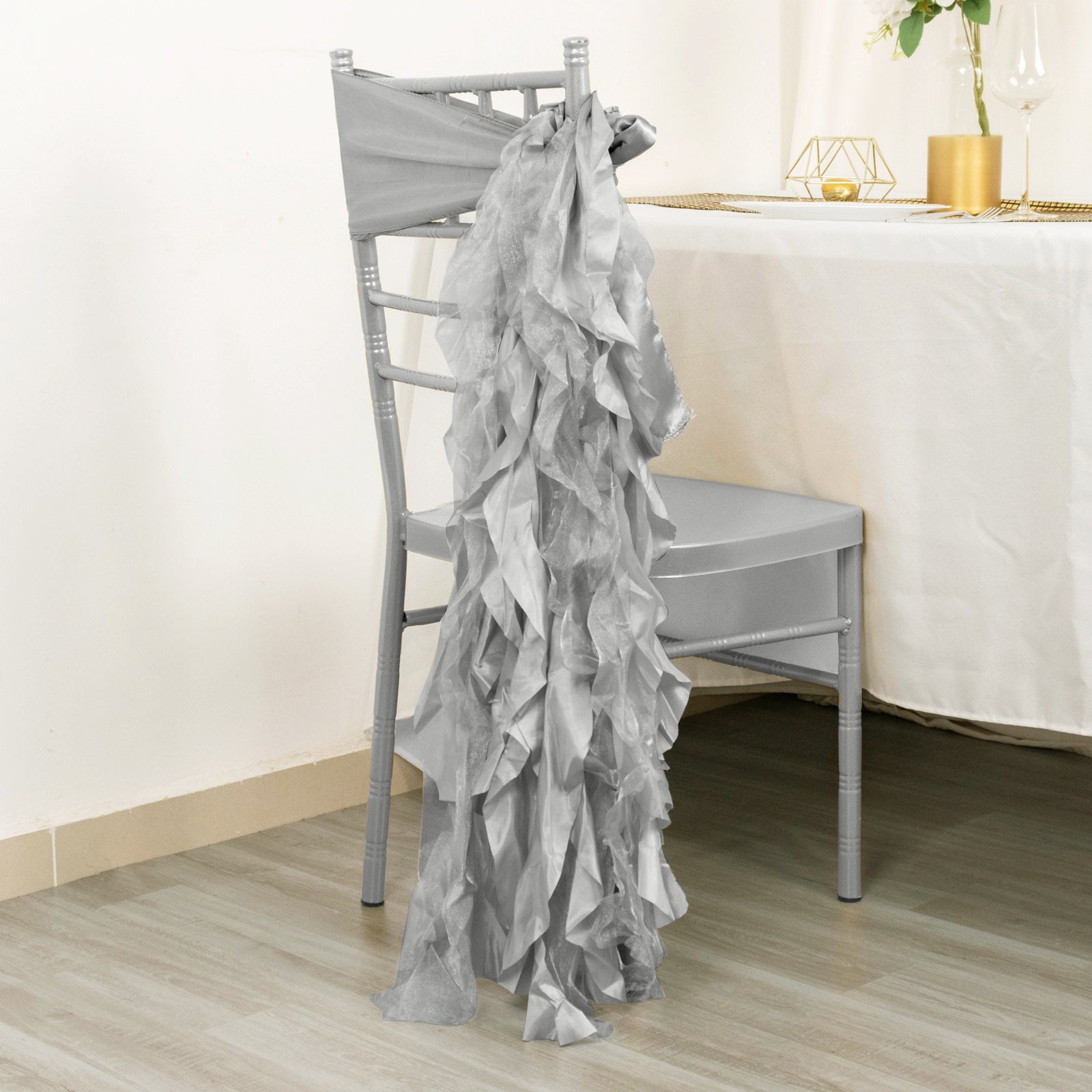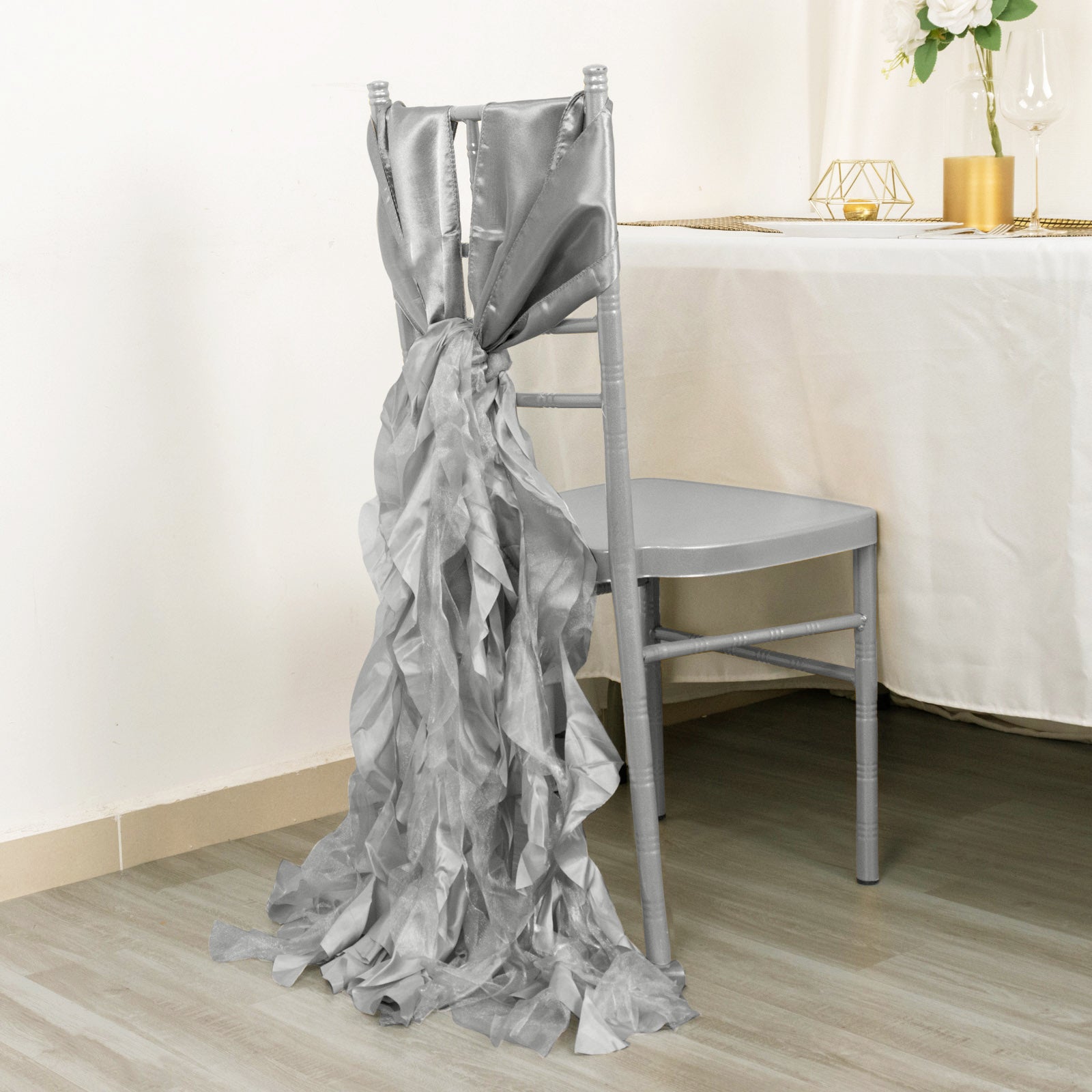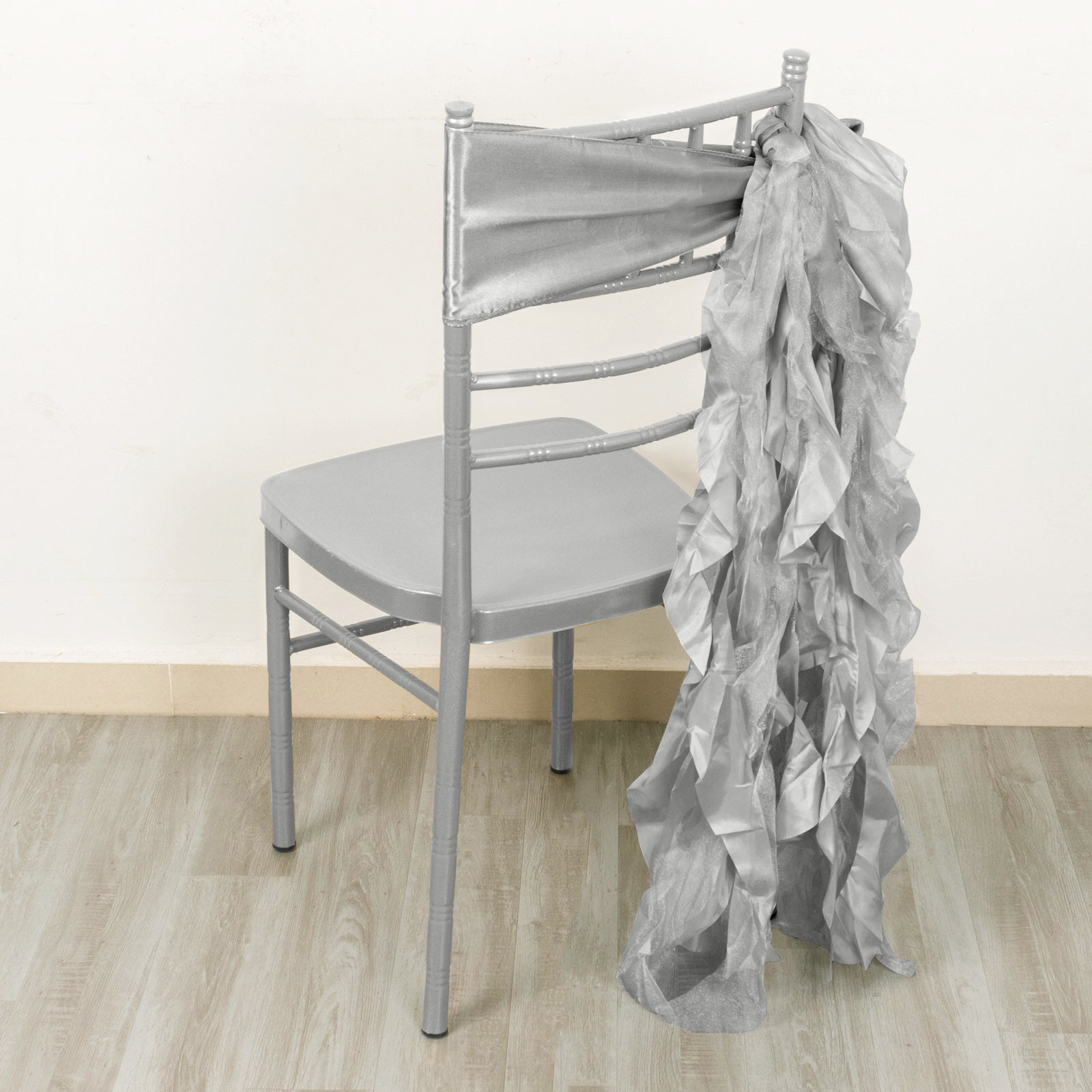 5 Pack Silver Curly Willow Chiffon Satin Chair Sashes