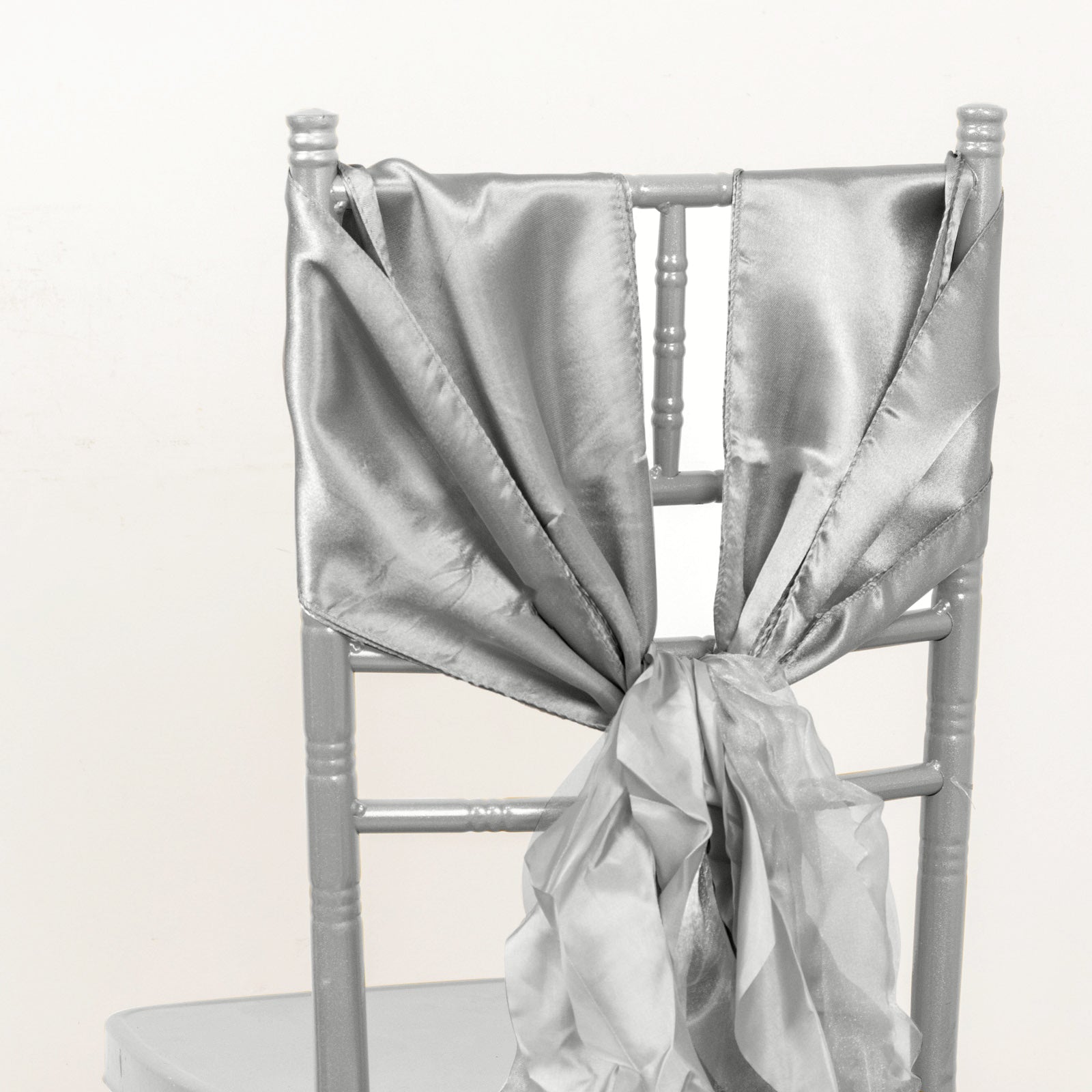 Crafted from premium satin, these chair sashes create a luxurious backdrop. The soft, flowing fabric drapes gracefully over chairs, enhancing your decor. The silver color radiates a sense of luxury, making it ideal for weddings, galas, and upscale events.