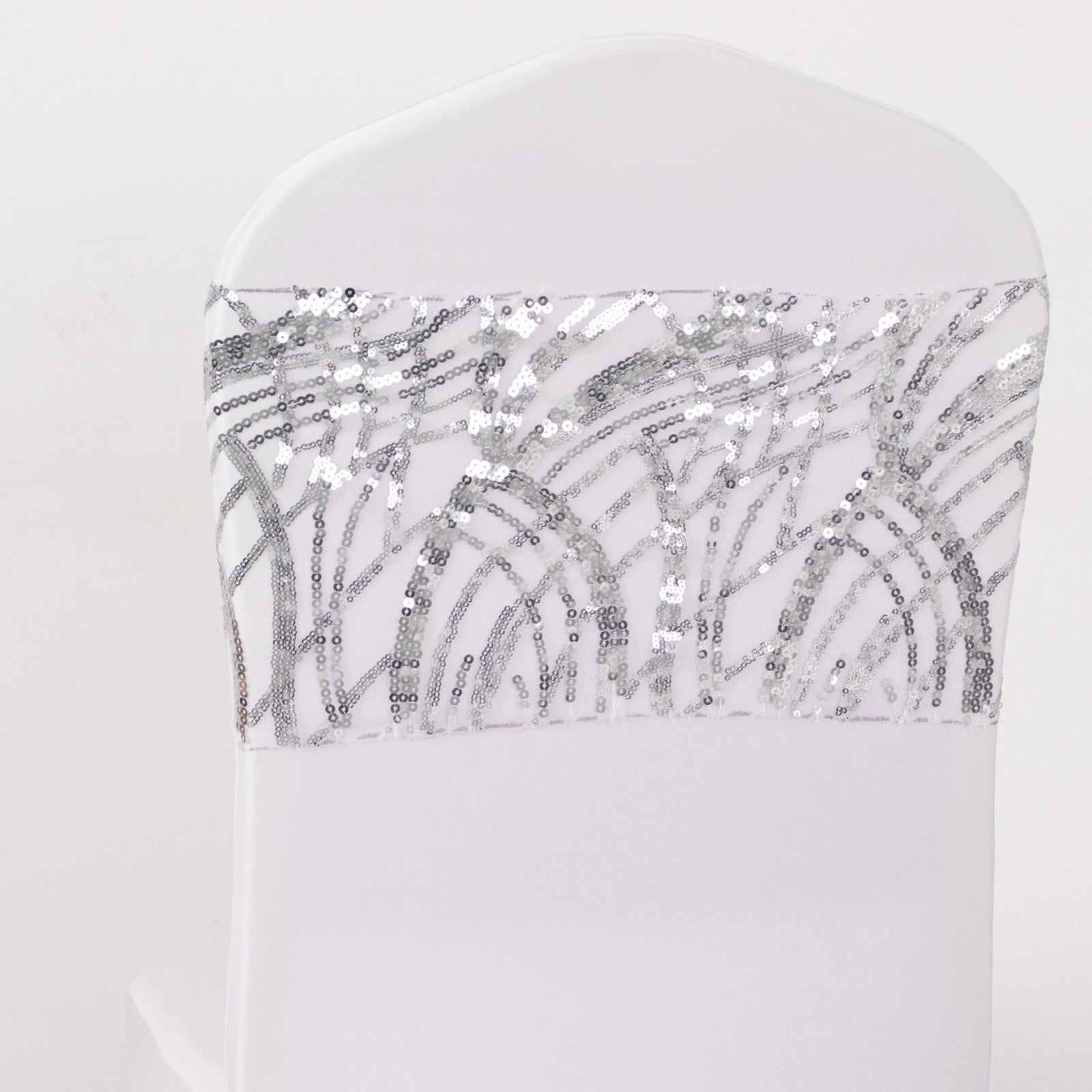 The advantages of using Silver Wave Chair Sash Bands are numerous. First, they instantly elevate the aesthetic of any event. The shimmering sequins and elegant design create a luxurious atmosphere that guests will appreciate.