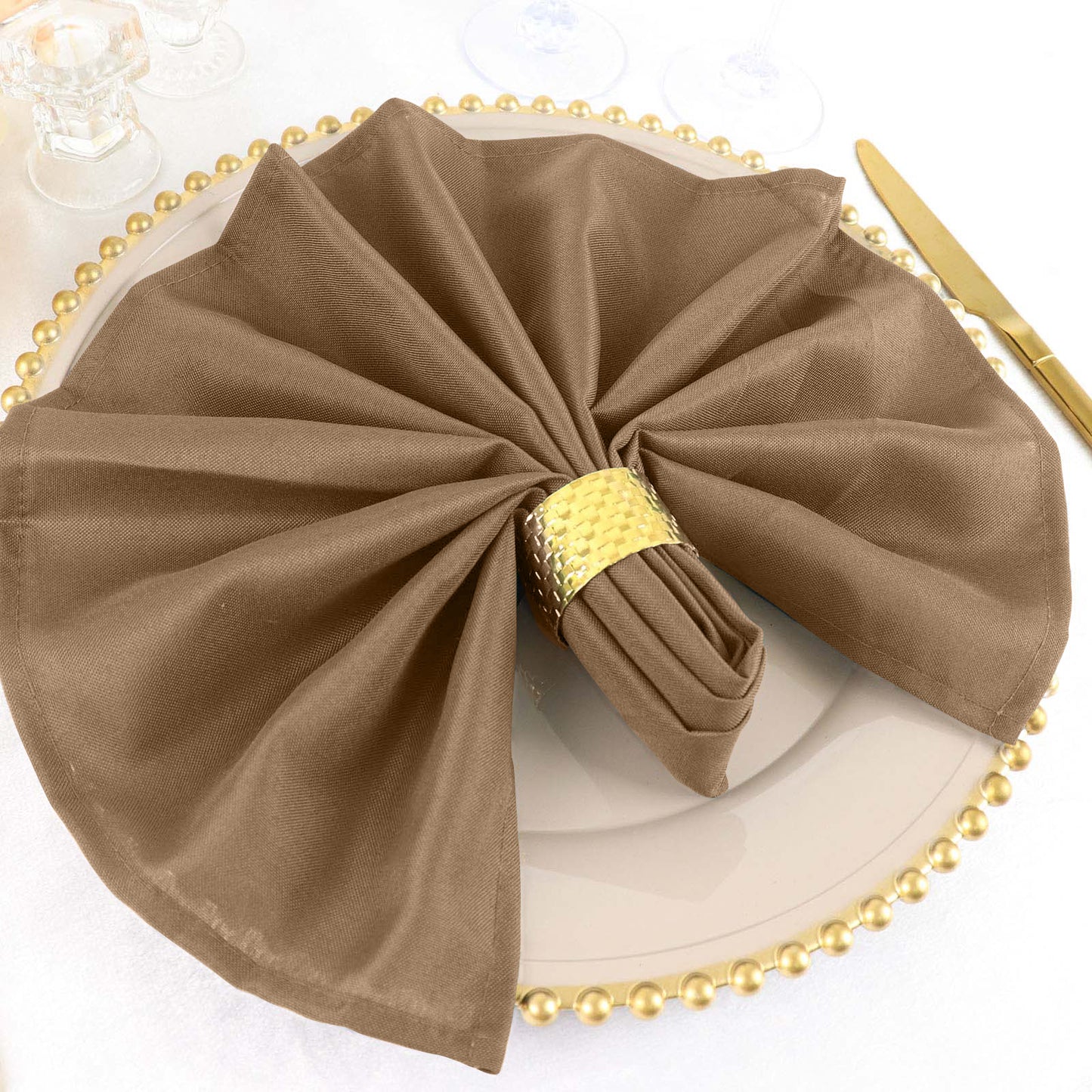 Crafted from high-quality polyester, these napkins provide a soft touch. The taupe color adds a warm, inviting feel to your décor. Whether you’re hosting an intimate gathering or a grand event, these napkins enhance the overall ambiance with their luxurious appearance.