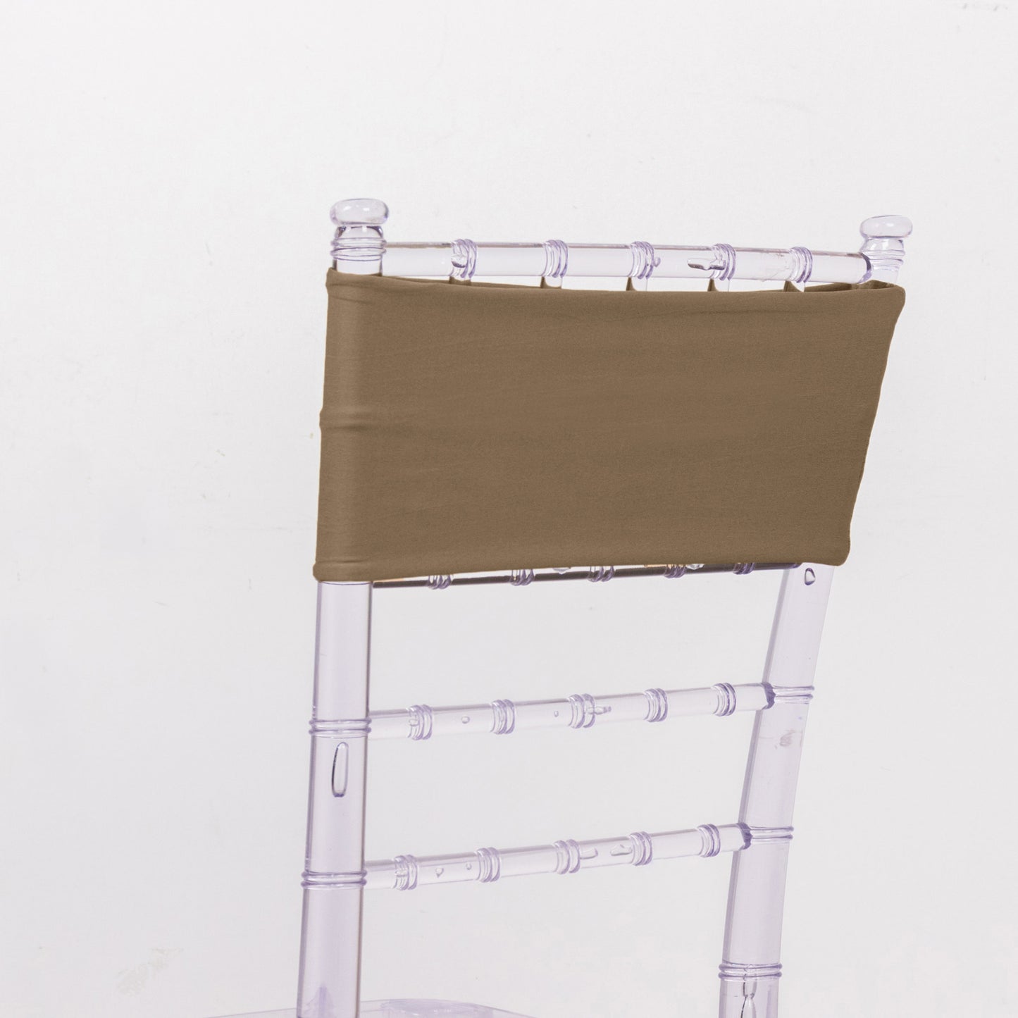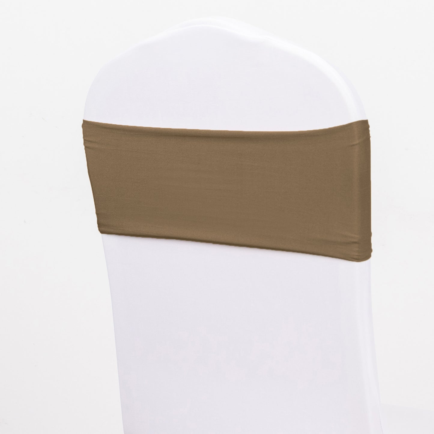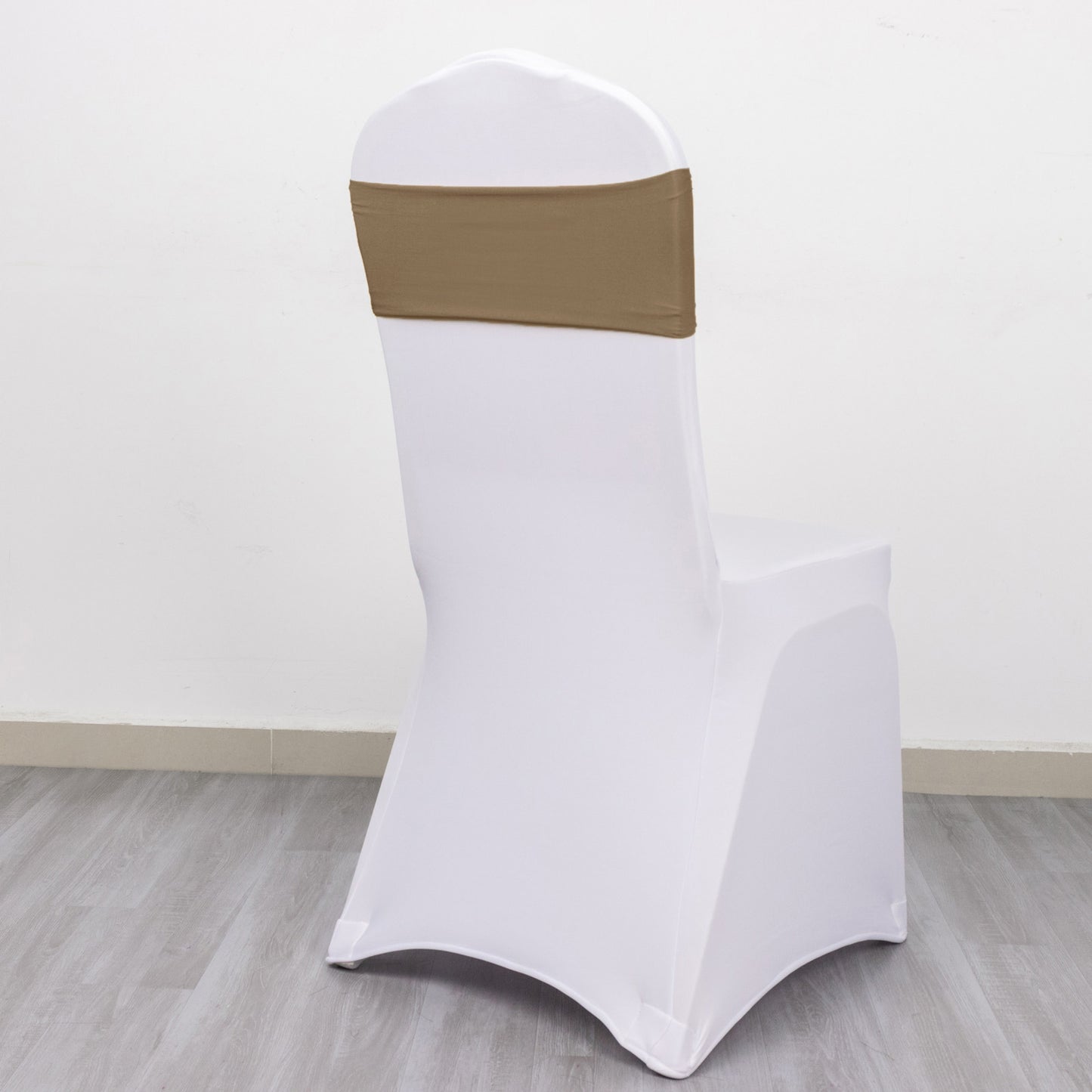5 Pack Taupe Spandex Stretch Chair Sashes Bands Heavy Duty with Two Ply Spandex - 5"x12"