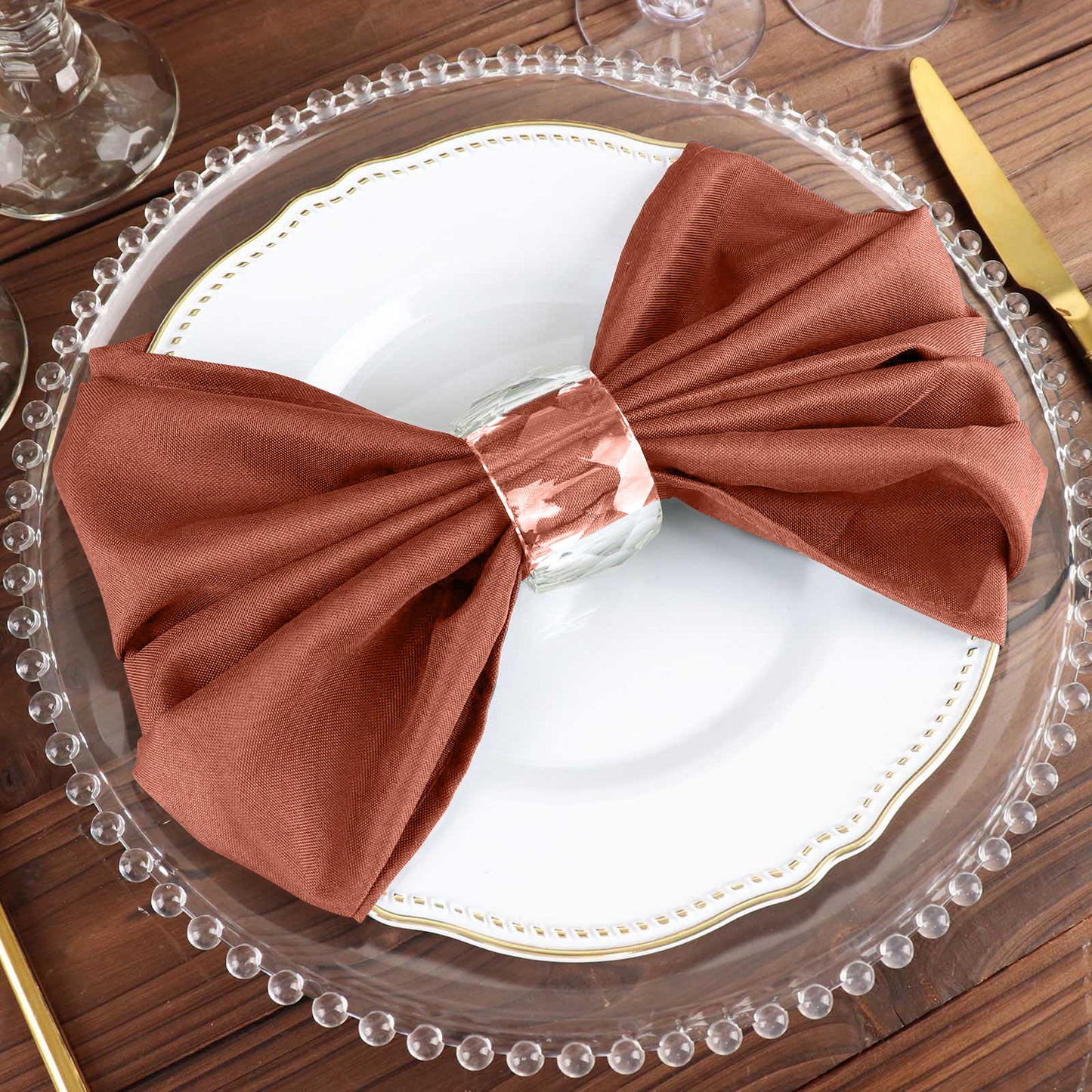 5 Pack Terracotta (Rust) Cloth Napkins with Hemmed Edges, Reusable Polyester Dinner Linen Napkins - 20"x20"