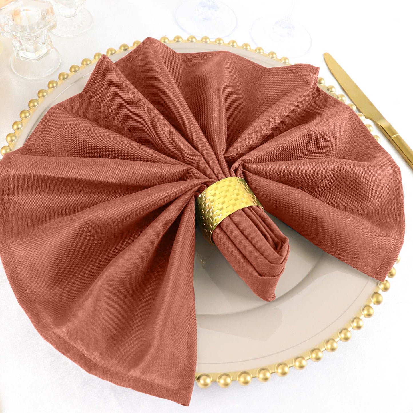 Cloth napkins, like our Terracotta (Rust) Polyester Linen options, add elegance to any table. They create a more formal dining experience compared to paper napkins. Guests appreciate the luxurious feel of quality linens.