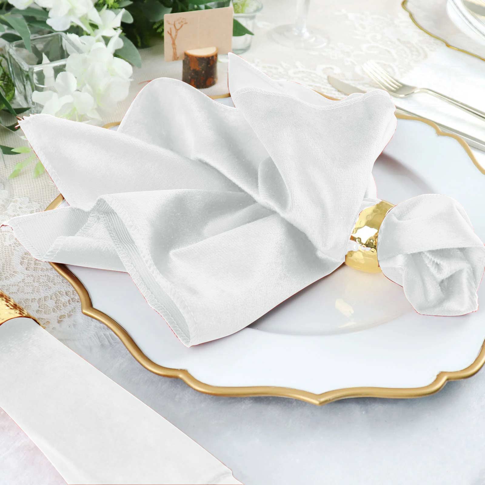 Velvet napkins, like our White Premium Sheen Finish Velvet Cloth Dinner Napkins, offer a unique combination of luxury and practicality. Their soft, plush texture adds a touch of sophistication to any table setting. This makes them an excellent choice for weddings, parties, and other special occasions.