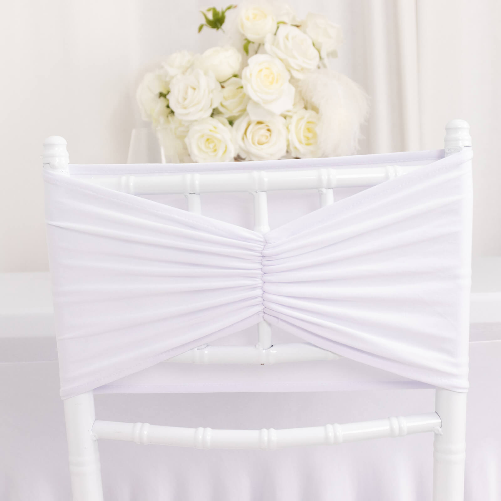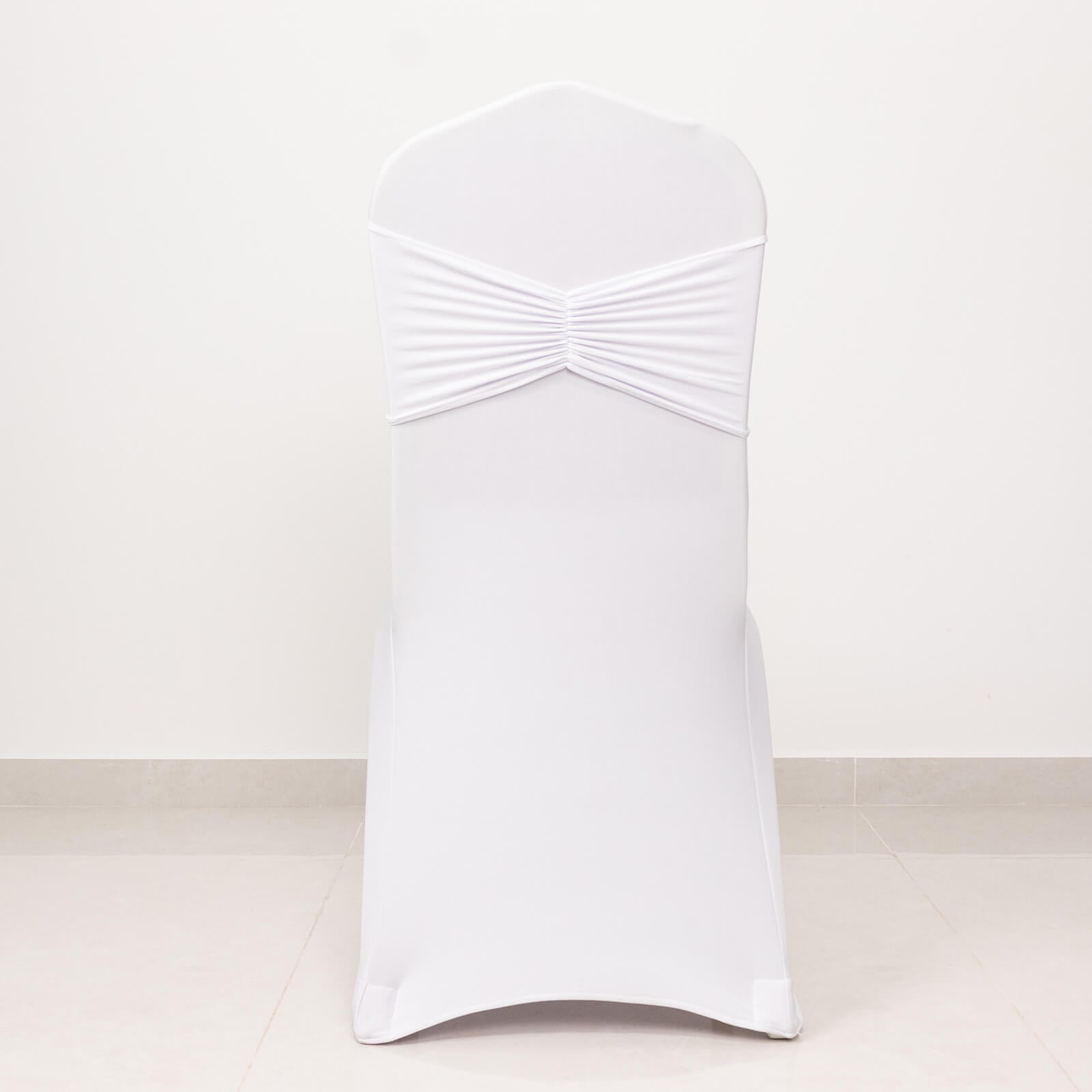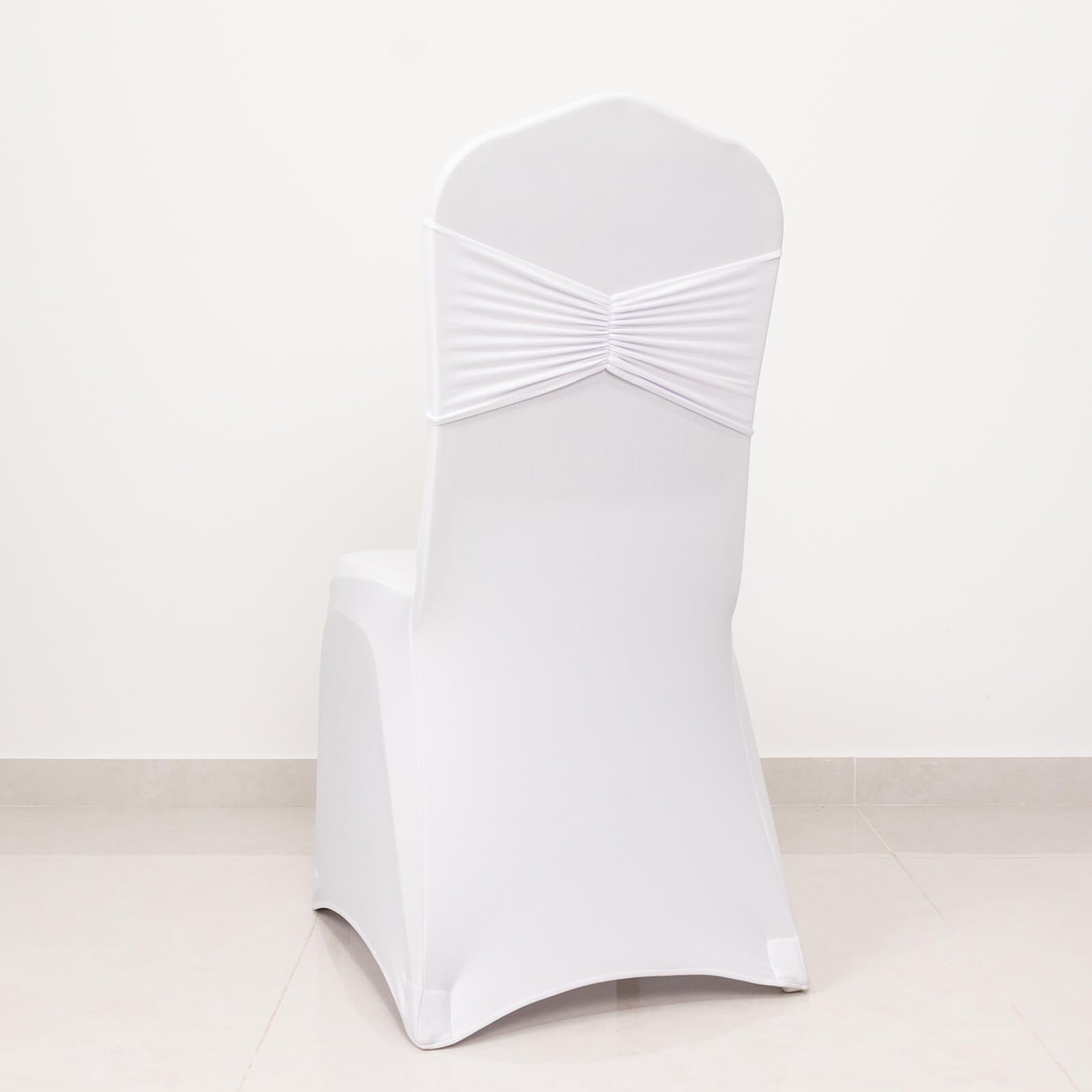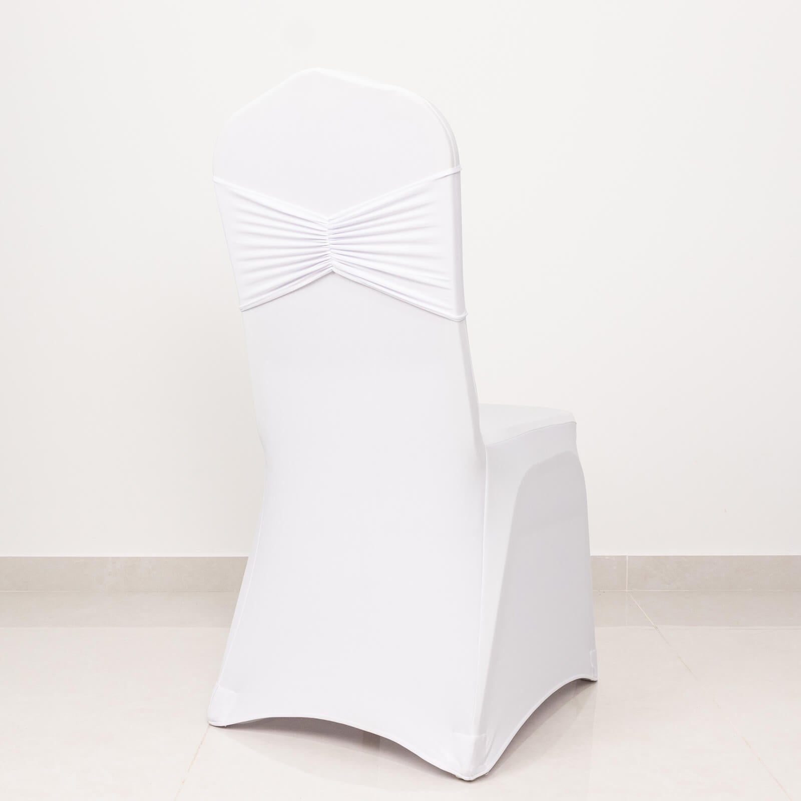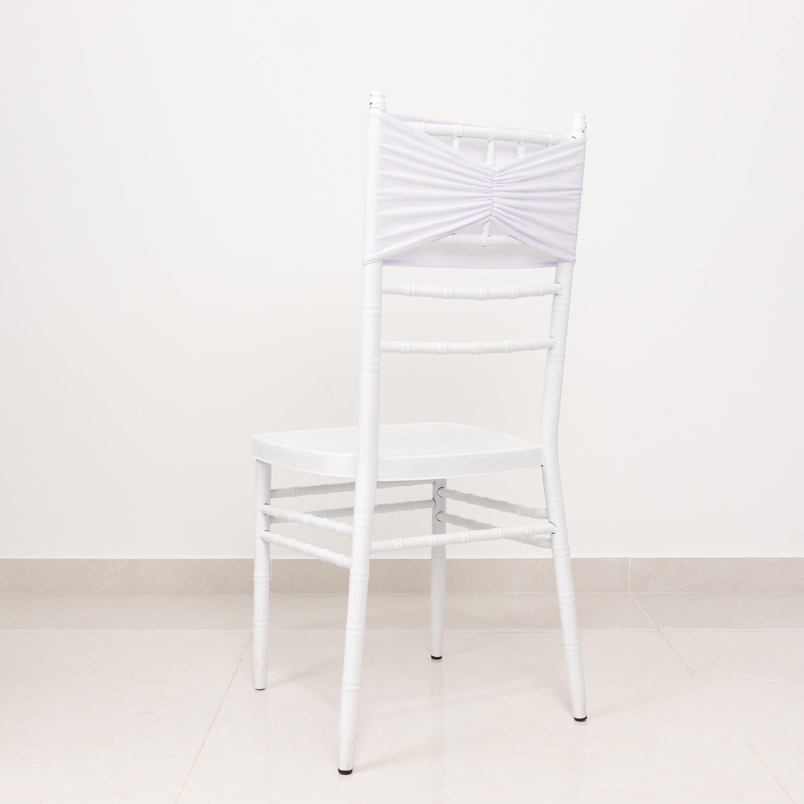 5 Pack White Wide Ruffled Fitted Spandex Chair Sash Band - 8"x13"