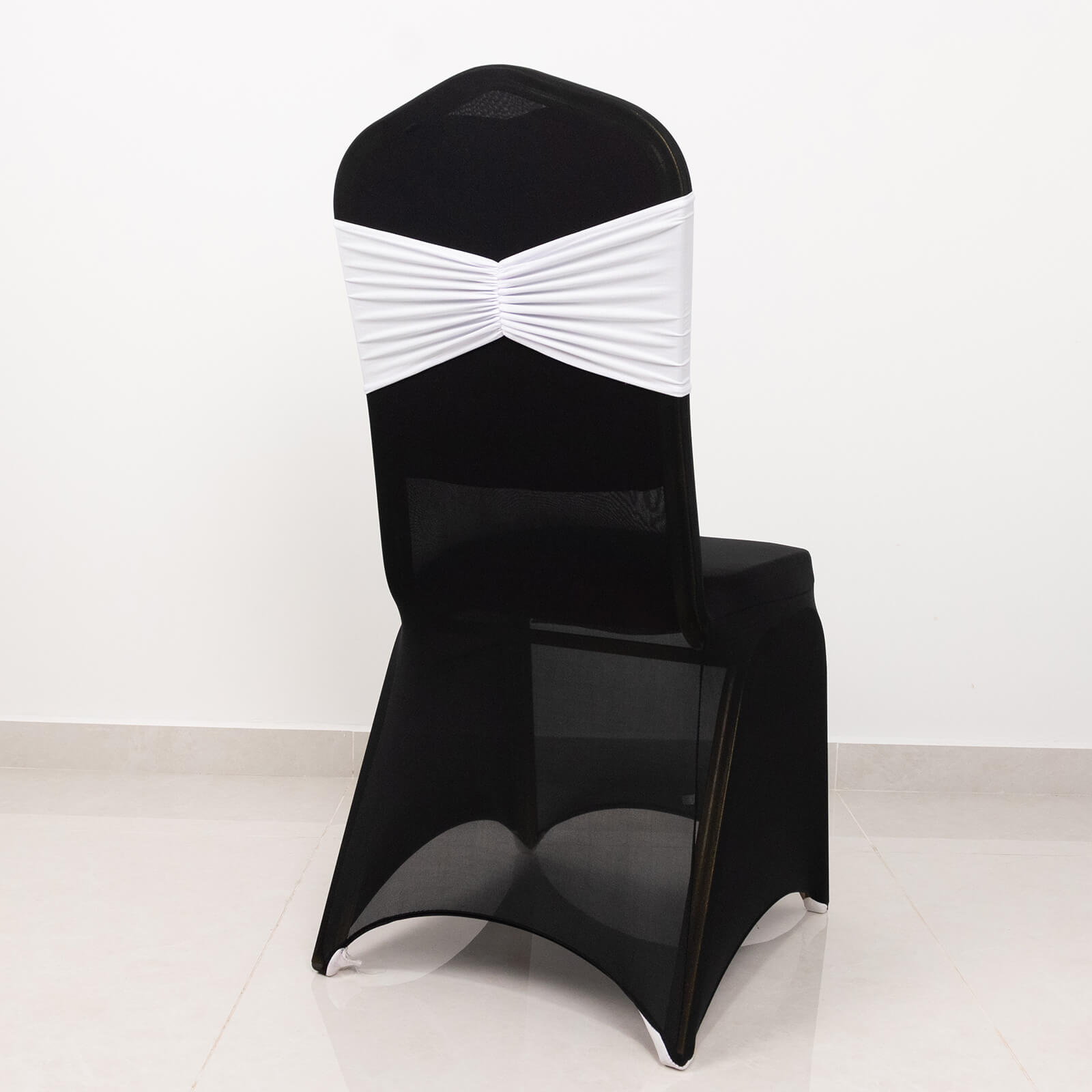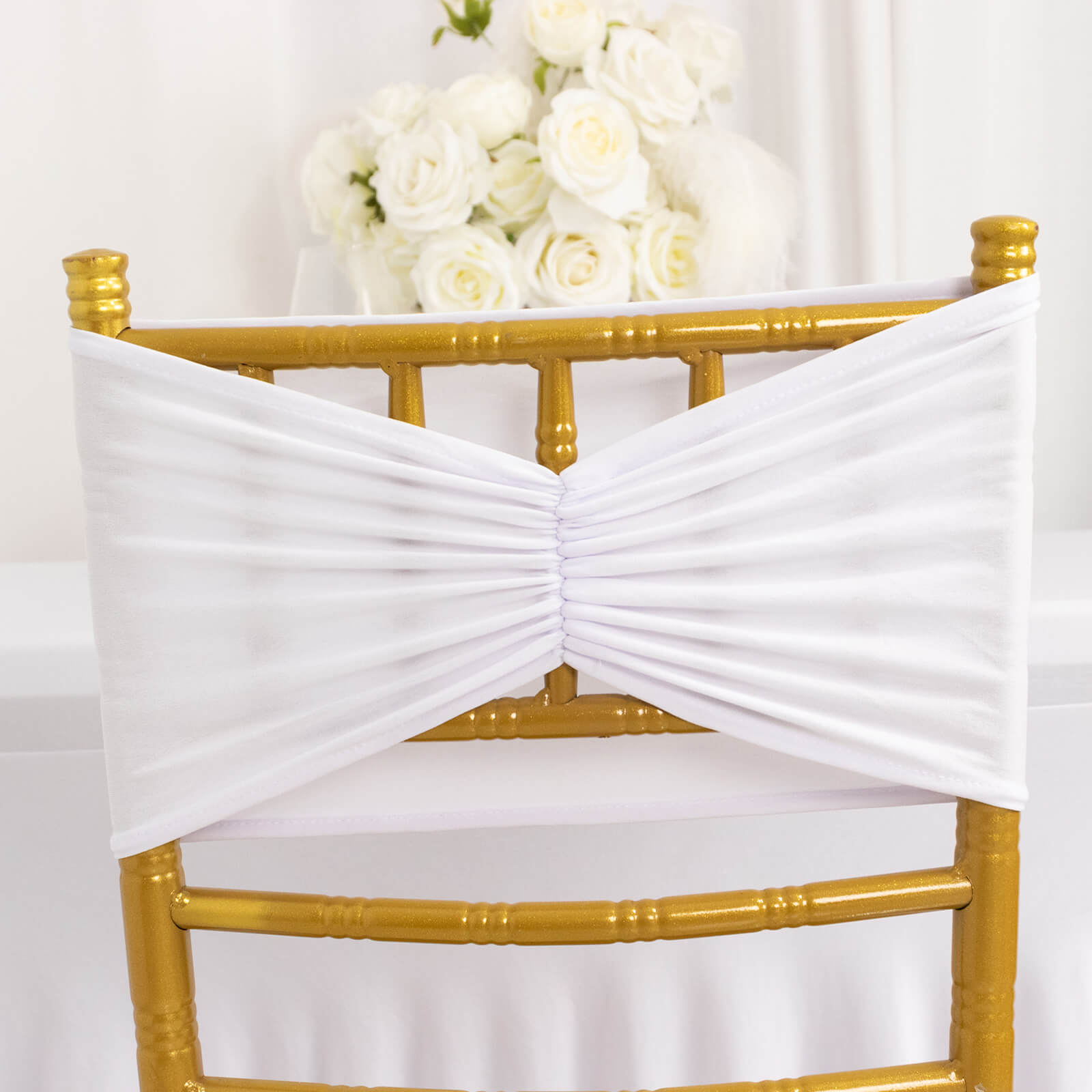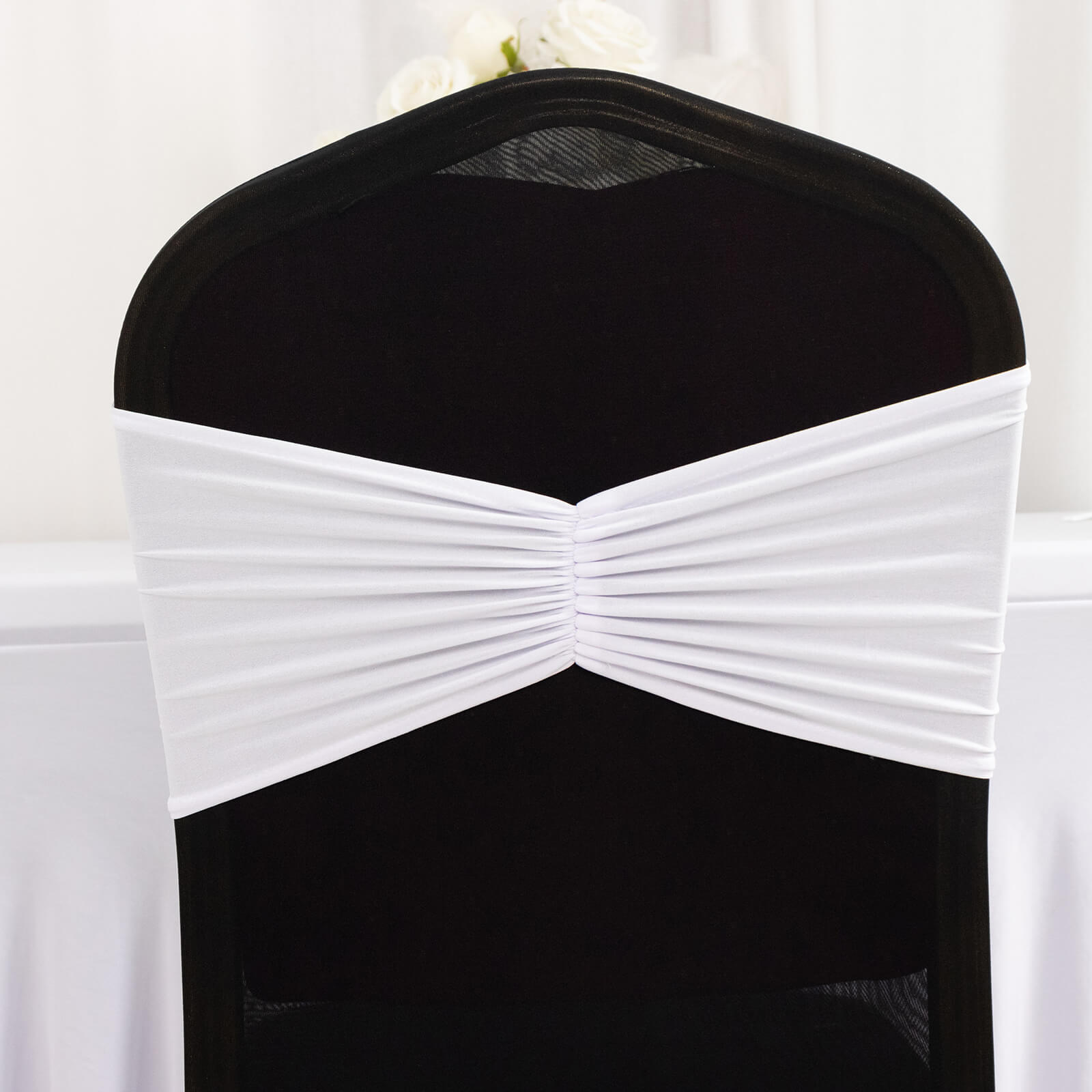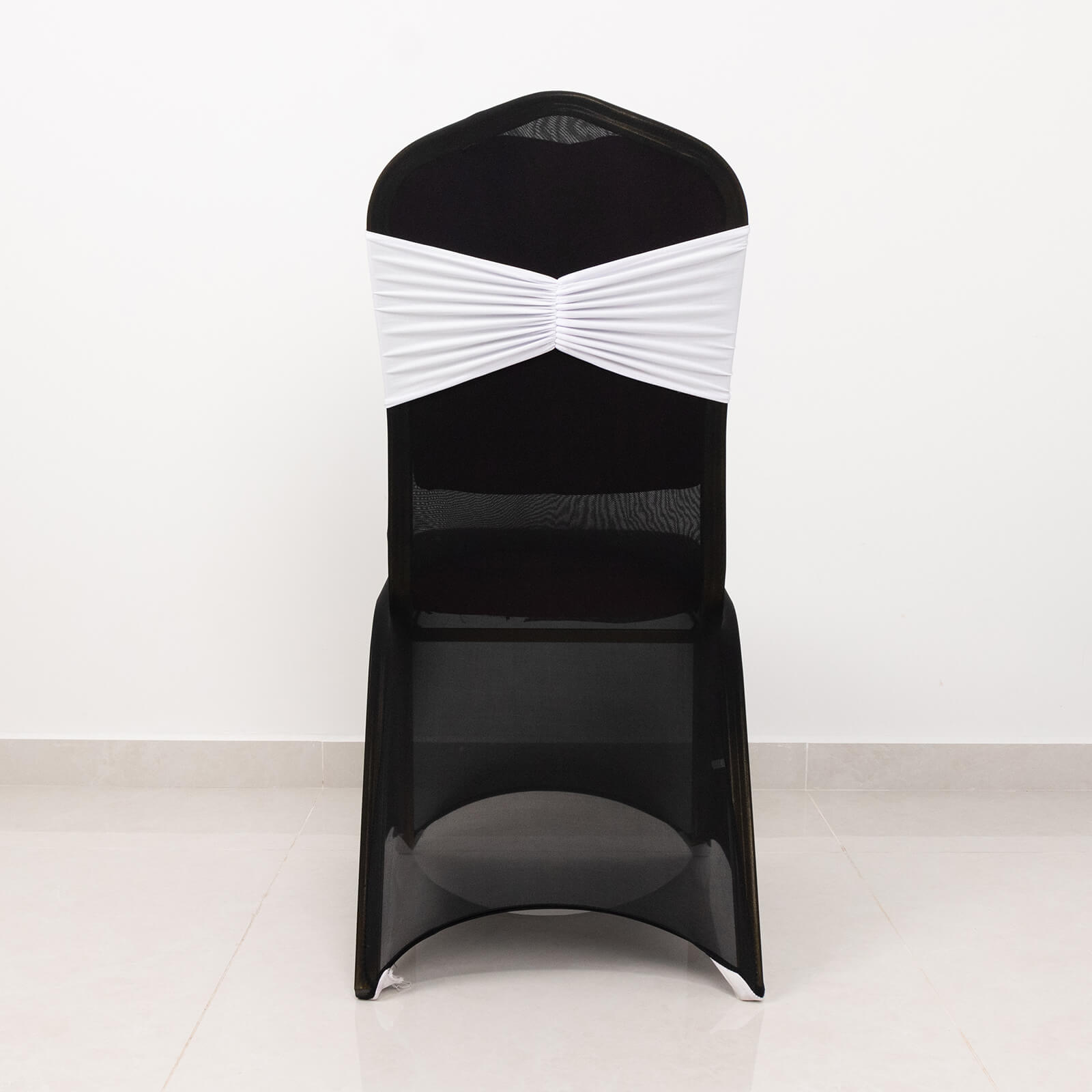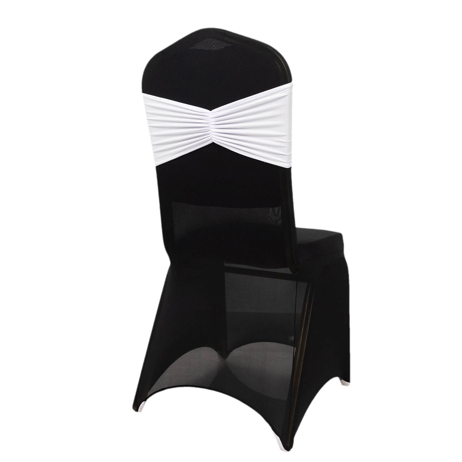 5 Pack White Wide Ruffled Fitted Spandex Chair Sash Band - 8"x13"