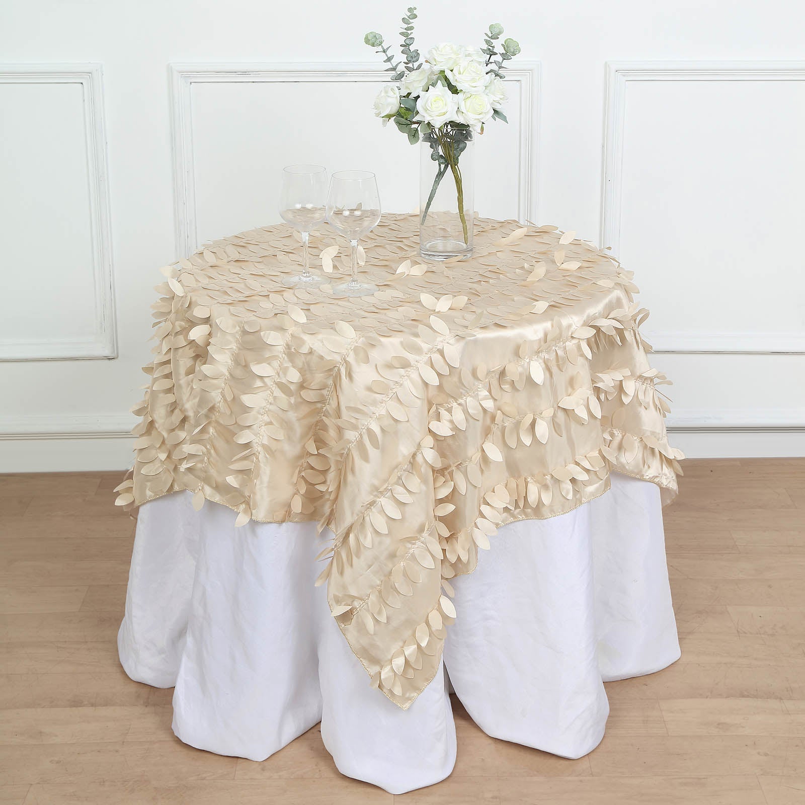 54" Beige 3D Leaf Petal Taffeta Fabric Square Tablecloth