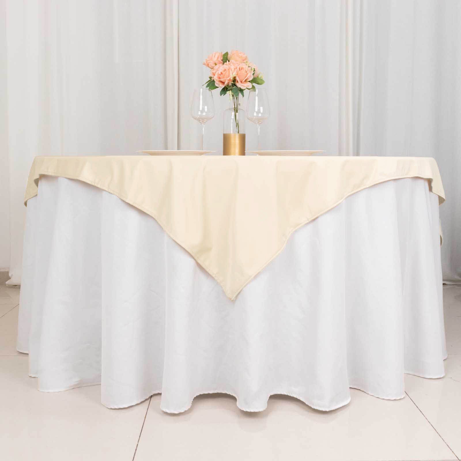 54" Beige Scuba Wrinkle Free Square Table Overlay, Scuba Polyester Table Topper