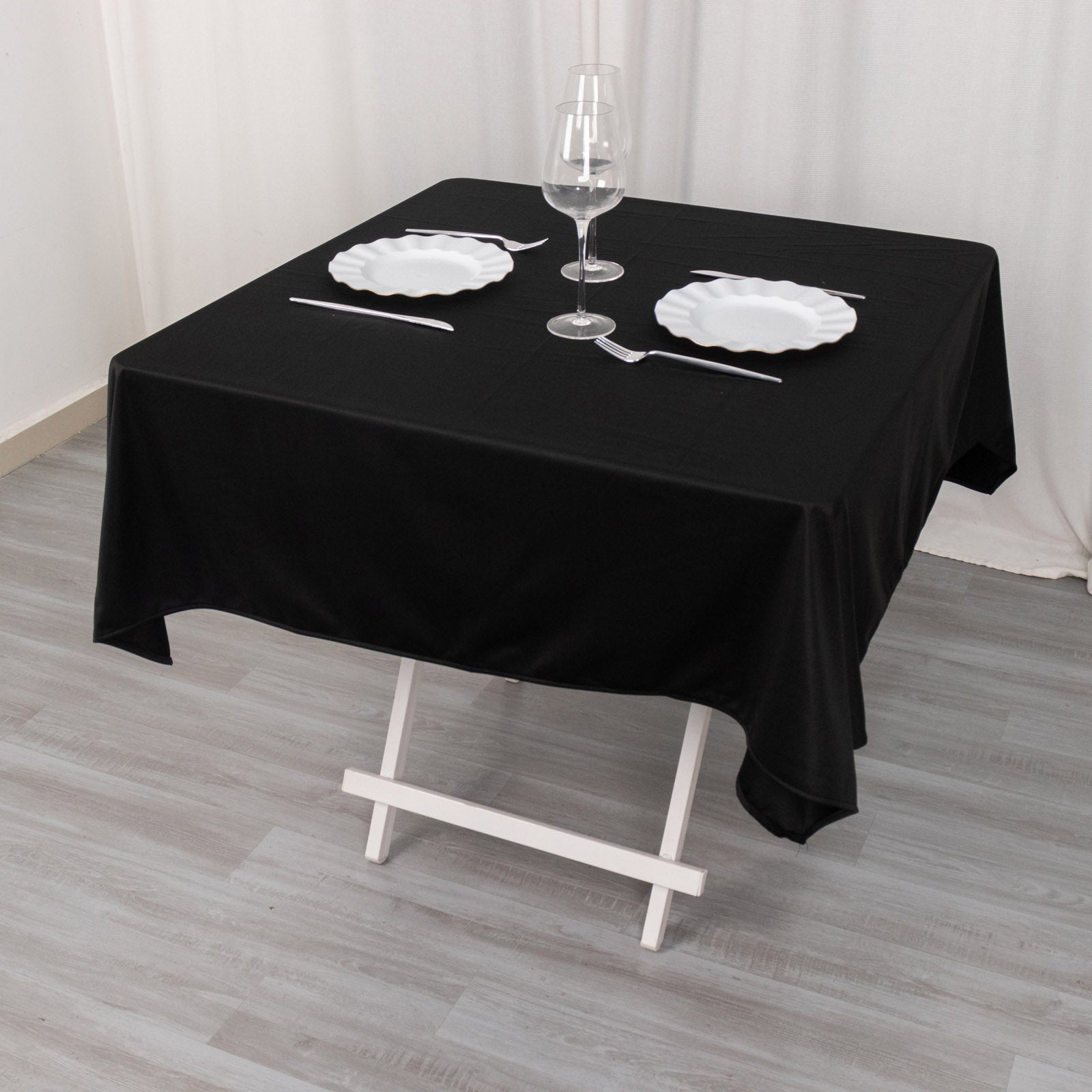 54" Black Scuba Wrinkle Free Square Tablecloth, Scuba Polyester Tablecloth