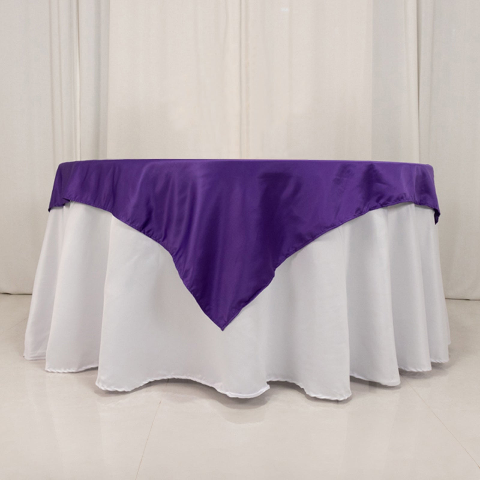 This 54" square overlay is perfectly sized for creating a layered look on standard-sized tables. Its Purple hue complements a range of color palettes, from neutrals to bolder tones, giving you incredible versatility in your decor choices. Use it to add a sophisticated dimension over round or rectangular tablecloths, letting it drape elegantly to showcase its satin sheen. Whether it’s a classic wedding or a modern celebration, this overlay adds depth and charm to every table, providing a visual focal point that enhances the overall atmosphere.