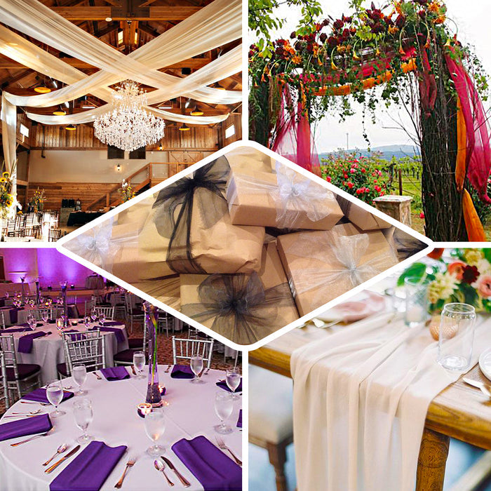 - Uses: Runners, DIY Crafts, Gowns, Costumes Making, Wrapping Favors and Gifts, Flower Bouquet Wrapping, Arches, Aisle, Photography, Ceilings and Backdrop Decorations.
