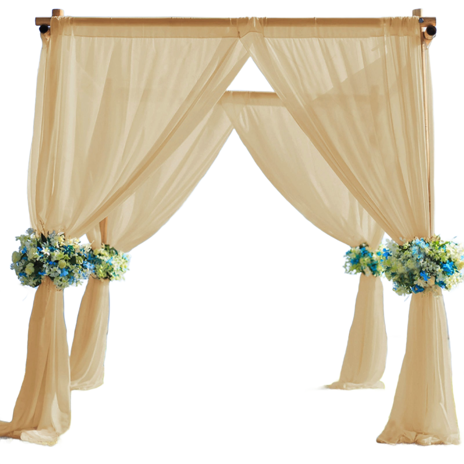 The 5ftx14ft Premium Champagne Chiffon Curtain Panel is made from durable chiffon fabric. This high-quality material ensures longevity and resilience. It can withstand the rigors of multiple events without losing its charm.