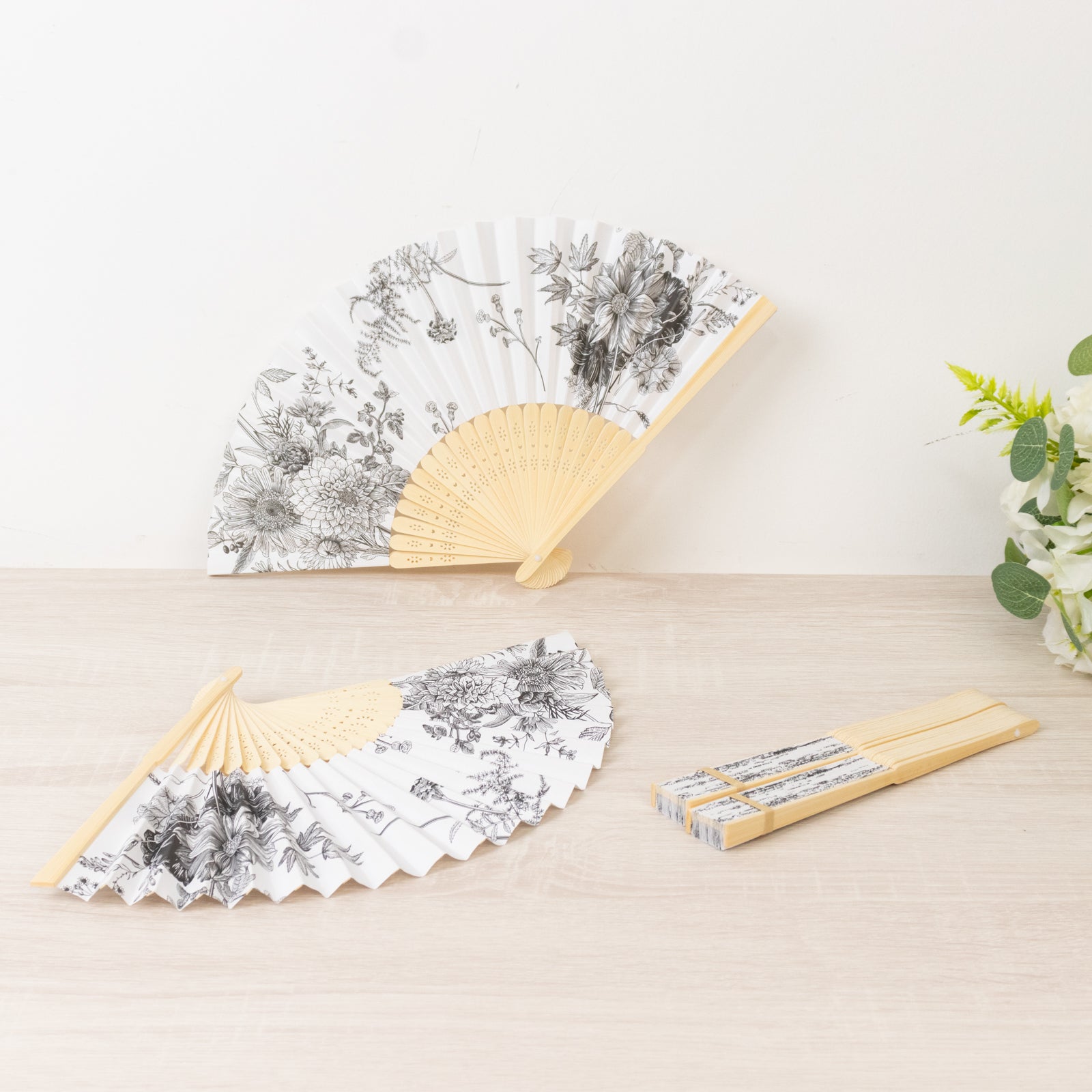 Another advantage of these fans is how seamlessly they can be incorporated into place settings or décor layers. For example, imagine them resting atop menus or secured with ribbon at each seat—a simple touch that instantly elevates the look of your tablescape. They also complement center table displays beautifully, especially if you're mixing in elements like Tabletop Centerpieces or floral accents. Because they fold compactly, you can store and transport them without hassle, making them a smart choice for planners juggling multiple décor items. And if you're styling an event with cloth elements—perhaps coordinating with Cloth Napkins—the toile pattern adds contrast without overpowering the rest of the table design. Overall, incorporating fans like these is an easy way to add flair and functionality while keeping guests comfortable from start to finish.