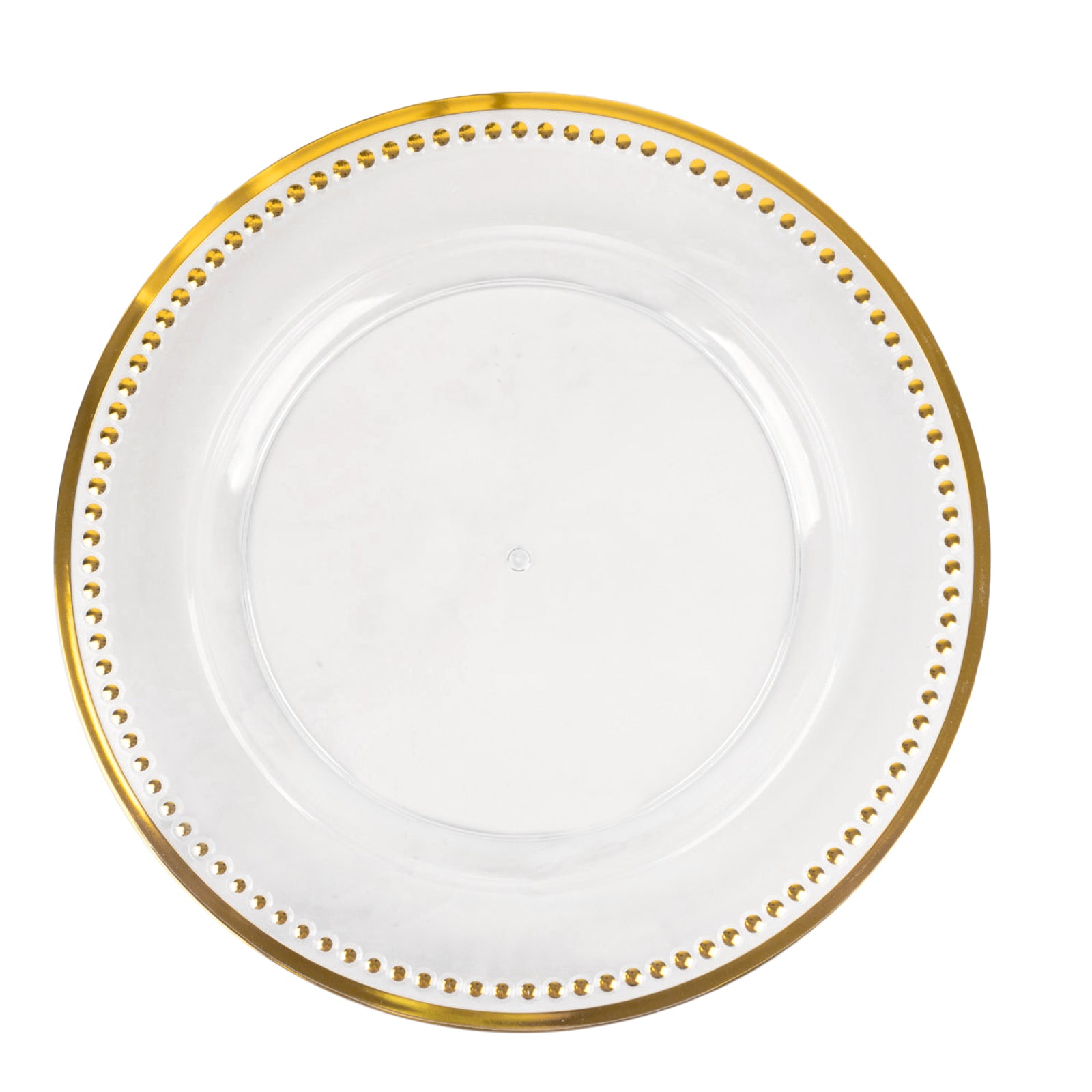 6 Pack 13" Beaded Clear Gold Acrylic Charger Plate, Plastic Round Dinner Charger Event Tabletop Decor