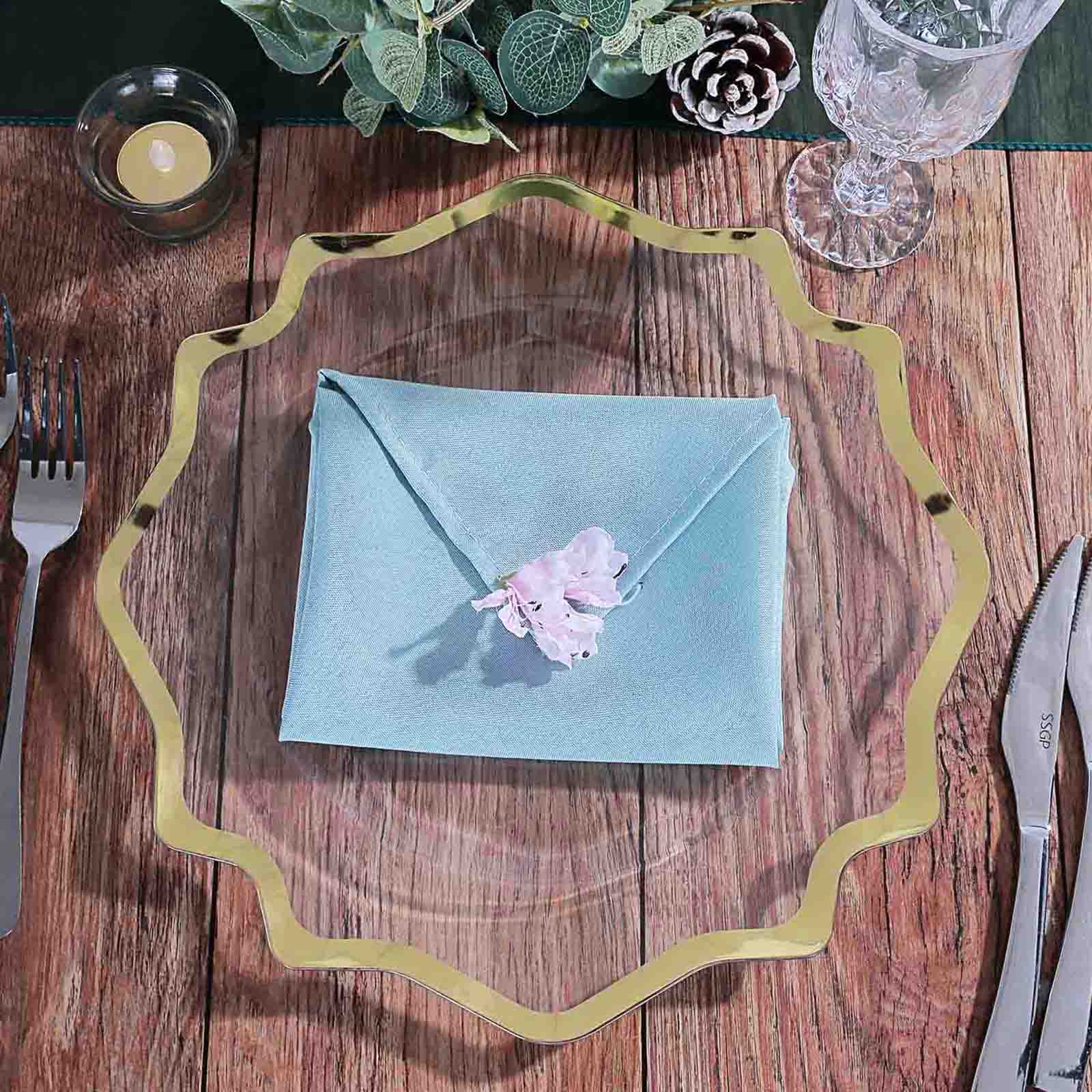 6 Pack | 13" Gold Scalloped Edge Clear Acrylic Plastic Charger Plates, Round Dinner Charger Plates