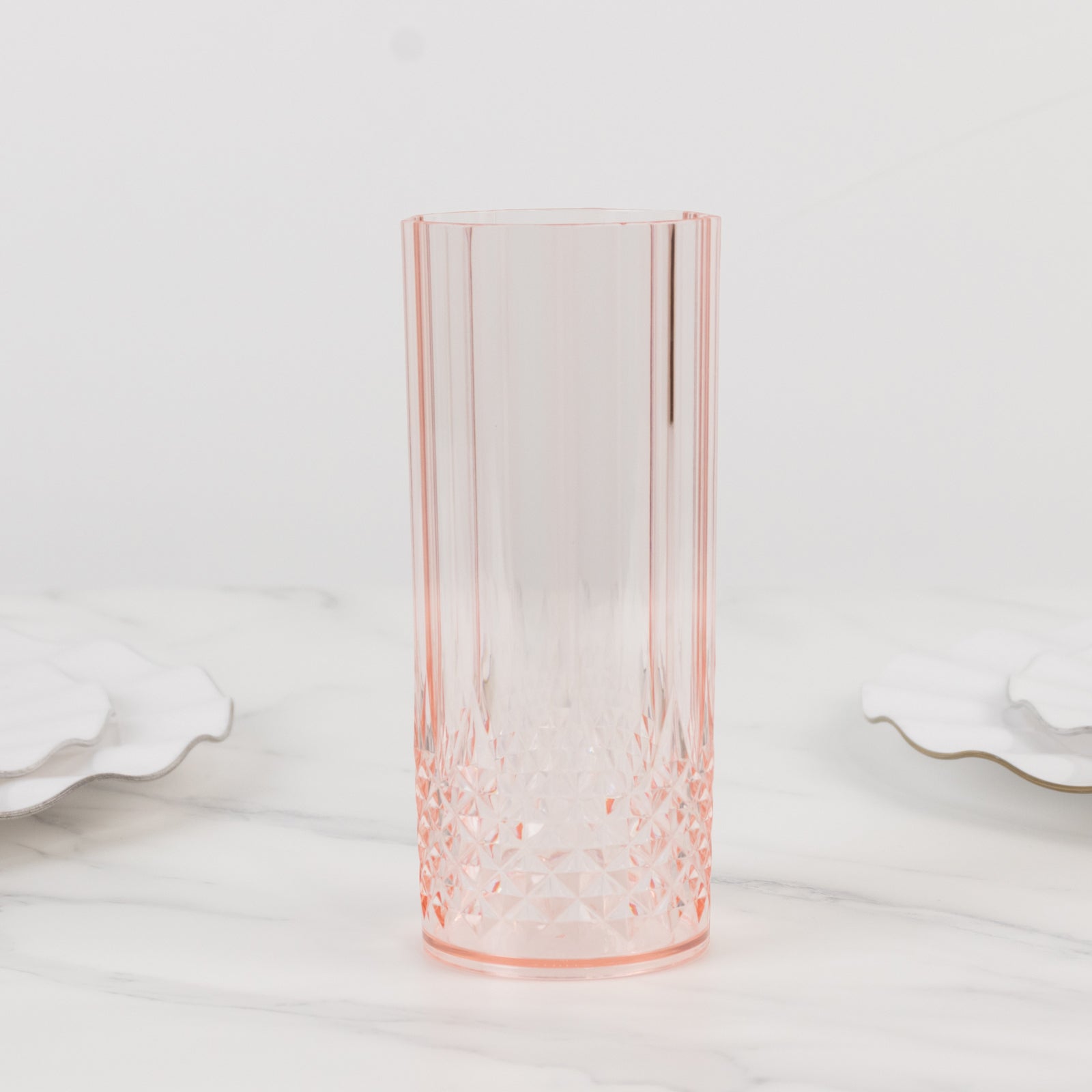 Transparent Blush Crystal Cut Reusable Plastic Highball Glasses
