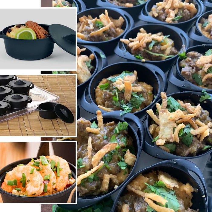 Versatility is a key feature of our black mini cooking pot bowls. Use them for various food types, from savory appetizers to sweet desserts. Their design complements any menu.