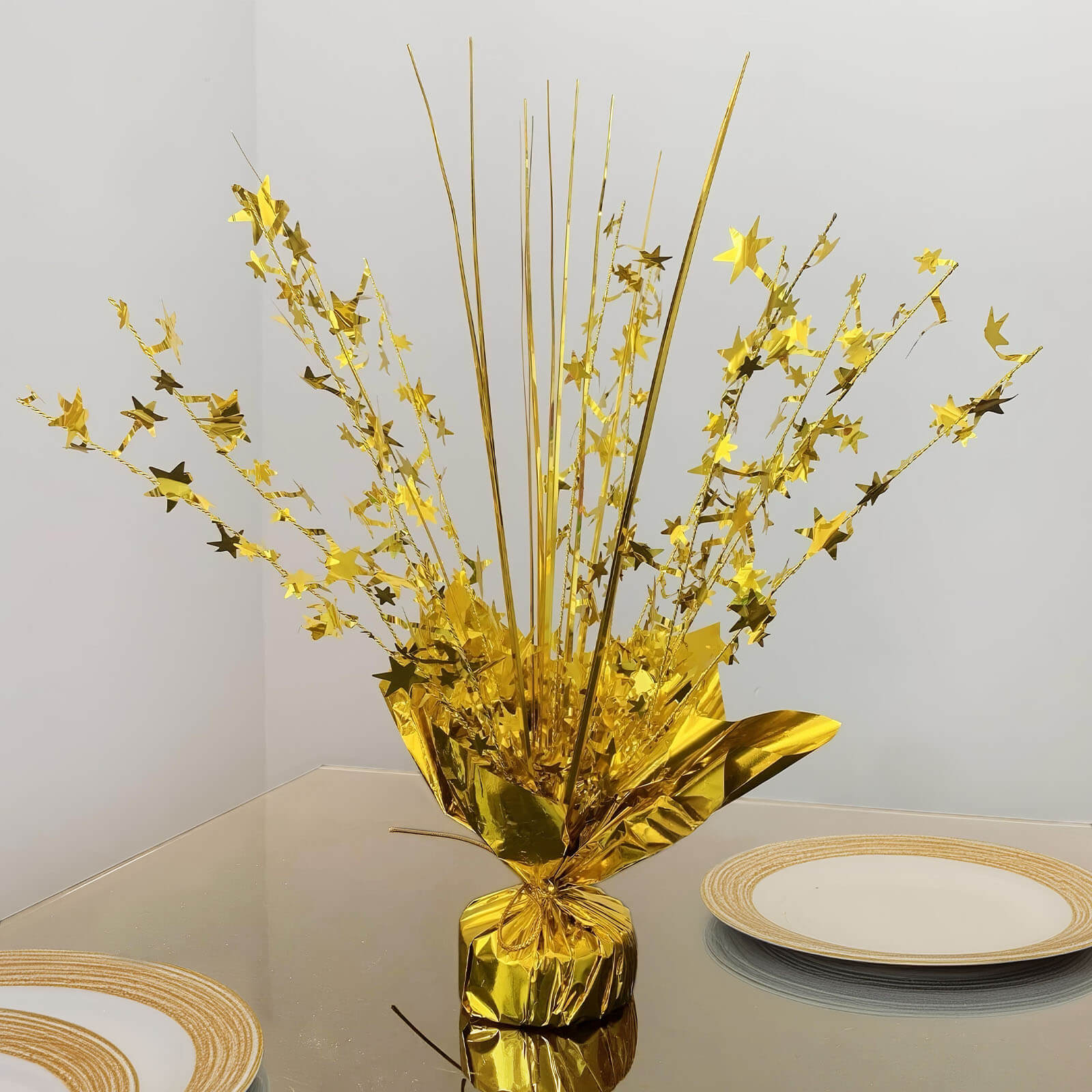 6 Pack Metallic Gold Star Foil Spray Centerpiece Table Decoration, 13" Free Standing Gleam 'N Burst Party Accessories