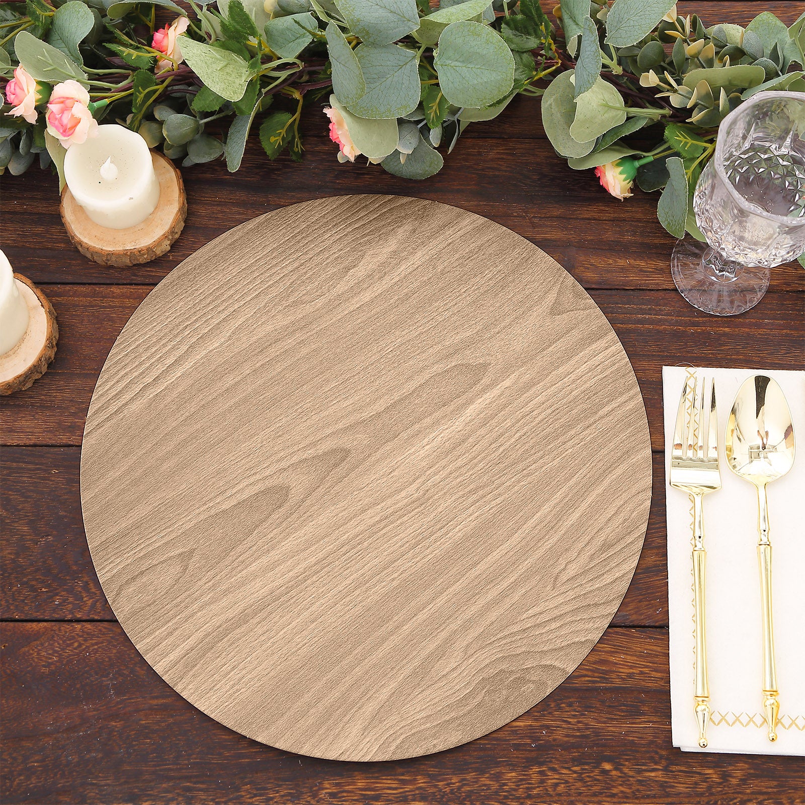 6 Pack Natural 13" Disposable Placemats With Walnut Wood Design, Round Paper Dining Table Mats