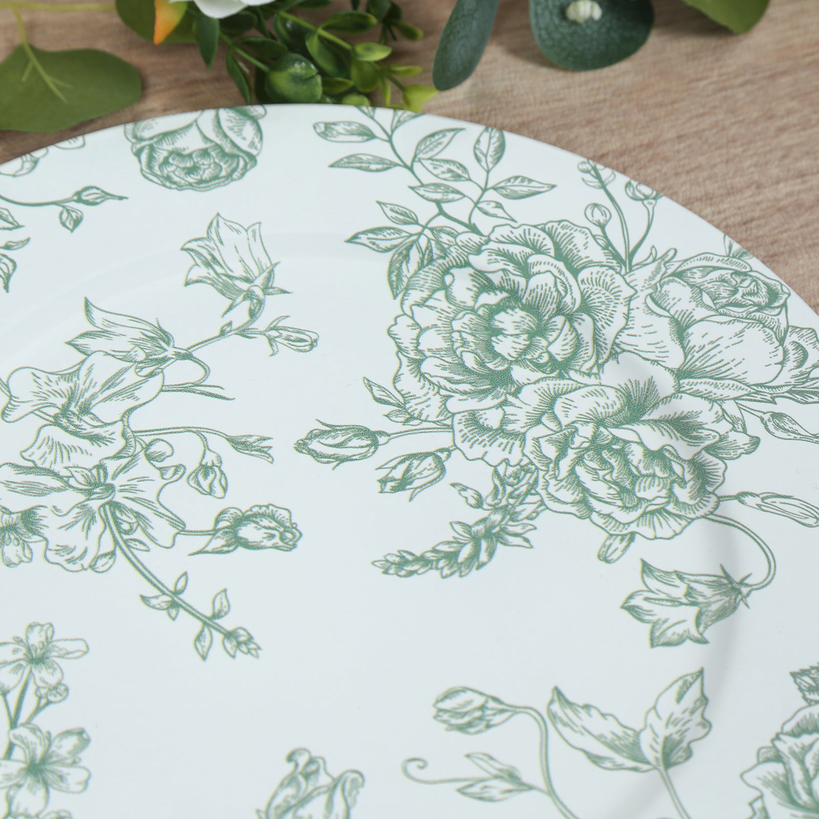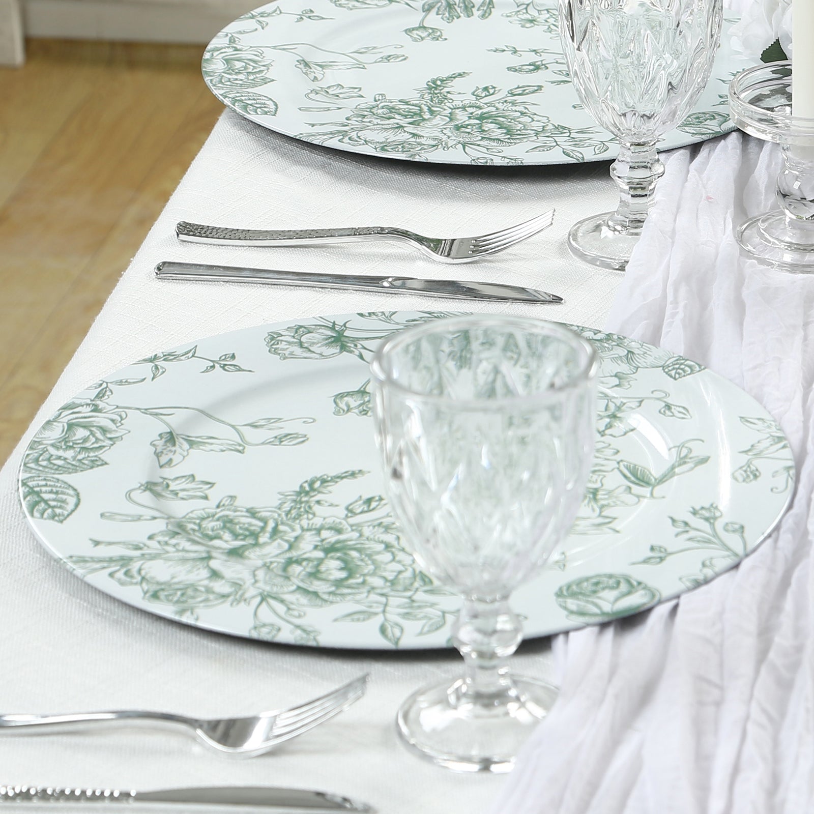 6 Pack Round Floral Acrylic Charger Plates in French Toile Pattern, 13" White Sage Green Dinner Charger Event Tabletop Decor