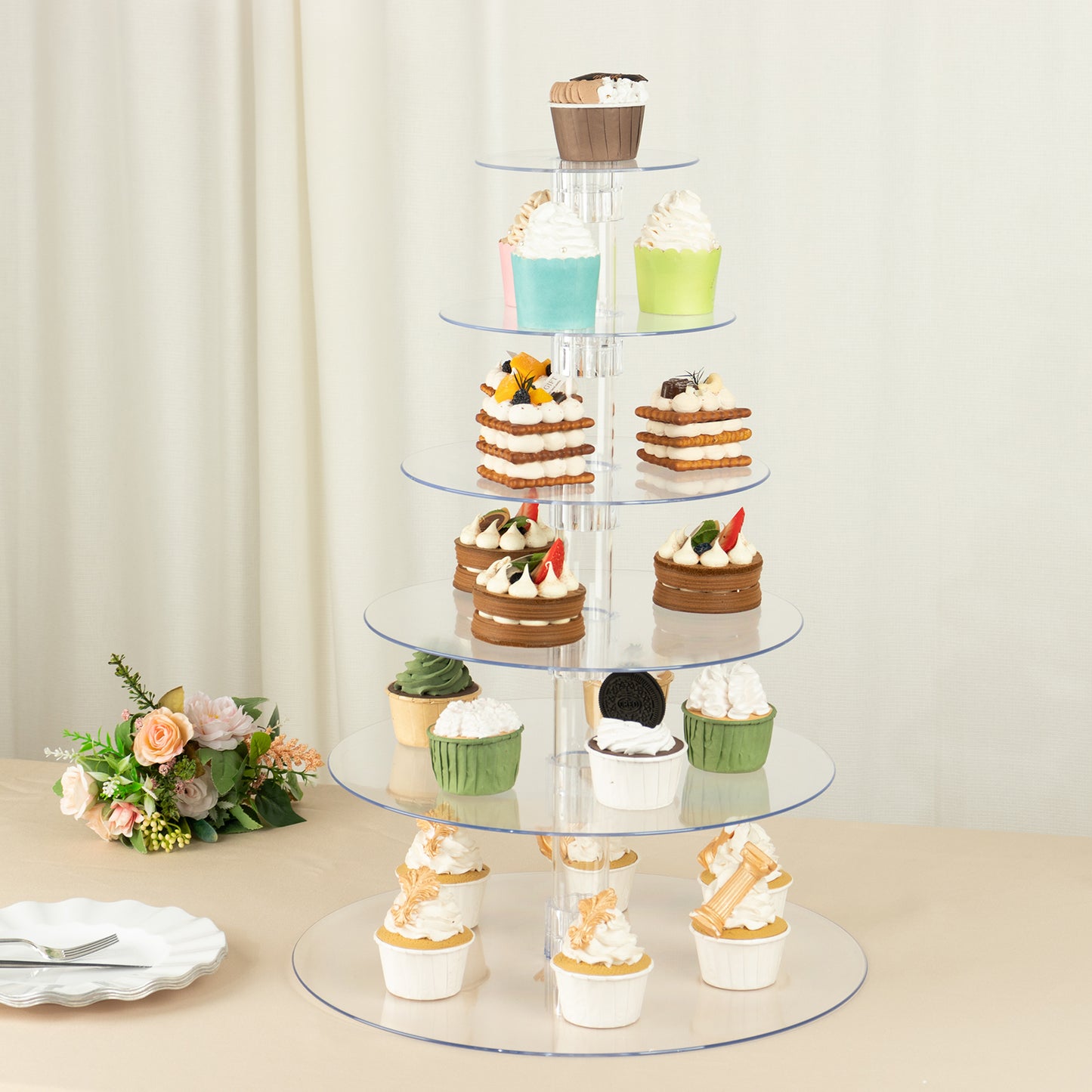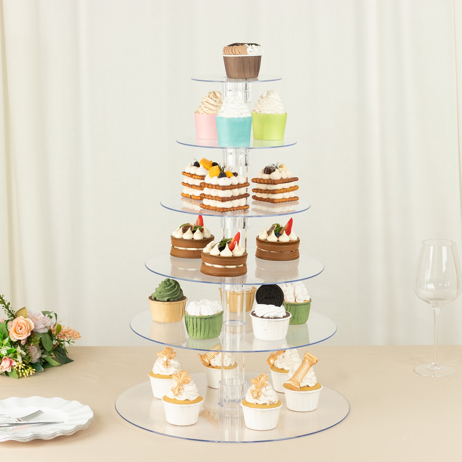 The 6-Tier Clear Round Acrylic Cupcake Tower Stand is a stunning centerpiece. Its sleek design offers a modern touch to your dessert table. Crafted from high-quality acrylic, it ensures durability and style for every event.