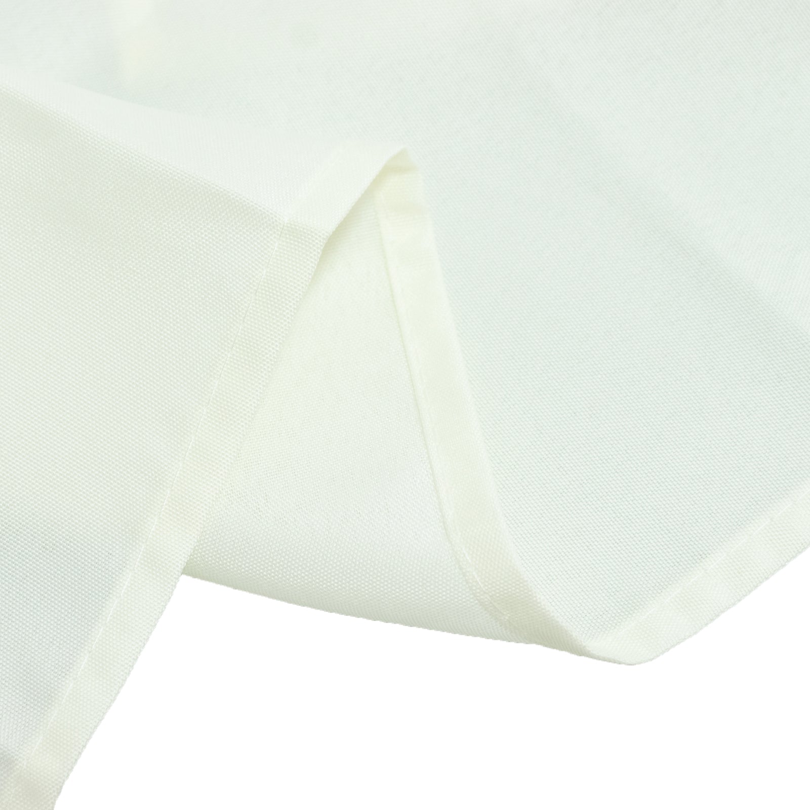 This ivory rectangle tablecloth serves as a versatile base for table décor. Pair with delicate Tabletop Centerpieces and subtle lighting to craft a warm, inviting environment. The wrinkle-resistant polyester fabric ensures a neat, professional appearance throughout your event. The soft ivory color complements metallic accents, flowers, and neutral tableware, providing versatility for a range of occasions.
