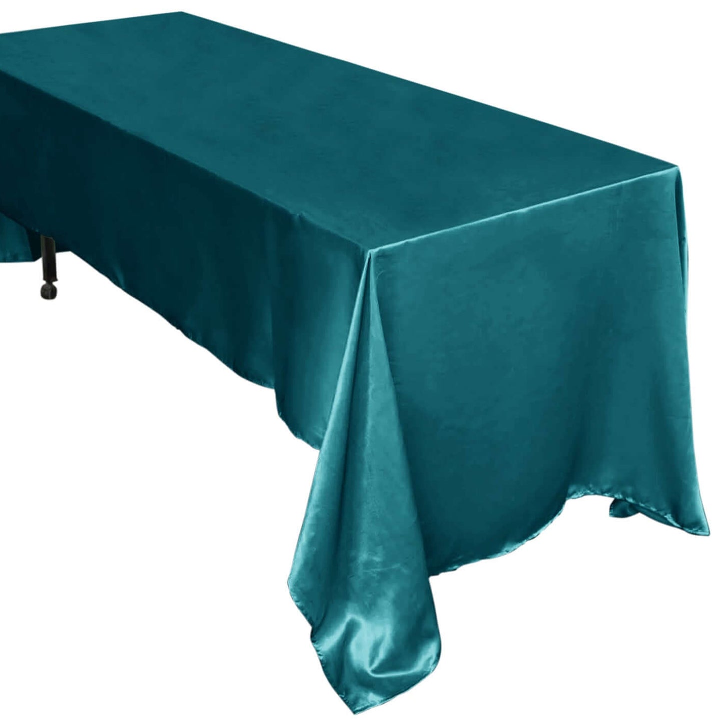 60"x126" Peacock Teal Seamless Satin Rectangular Tablecloth