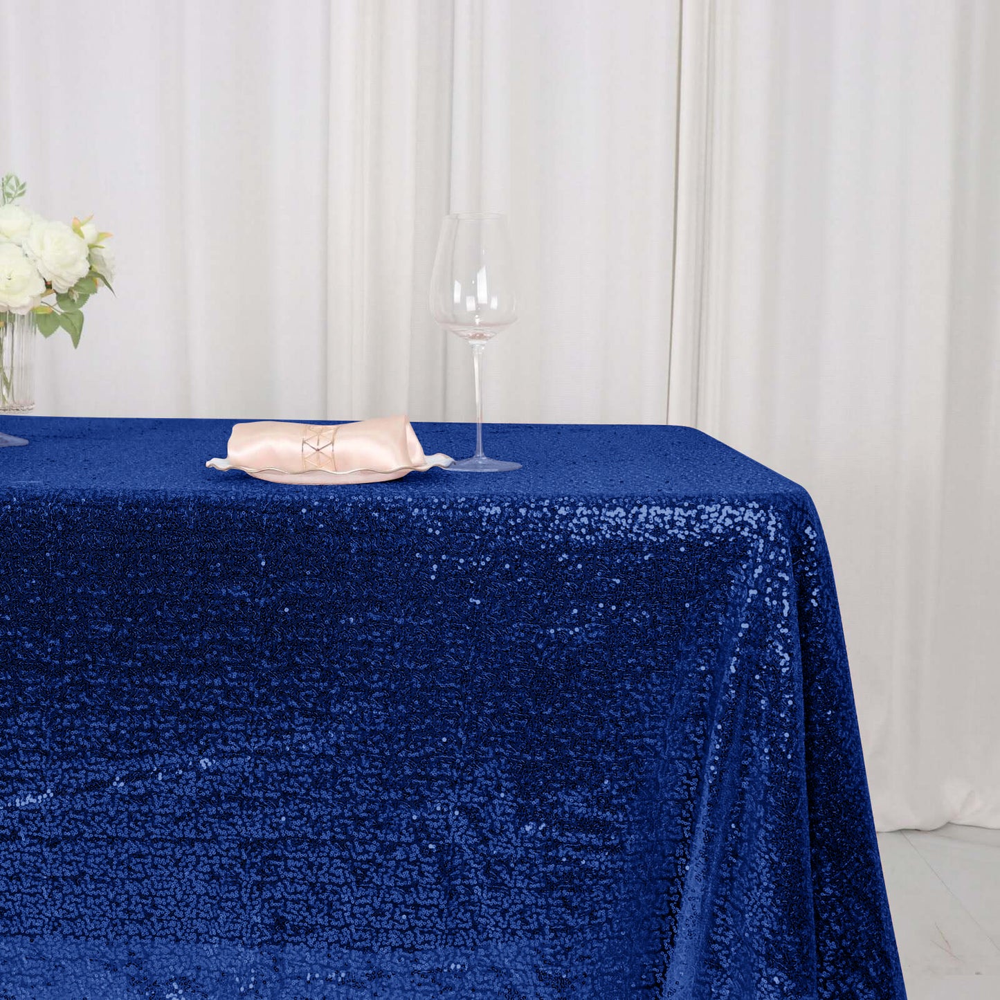 Add a touch of glamour to your event with our Royal Blue Sequin Tablecloth. The shimmering sequins are intricately sewn onto premium fabric, creating a dazzling effect. This tablecloth is perfect for adding a luxurious feel to any occasion.