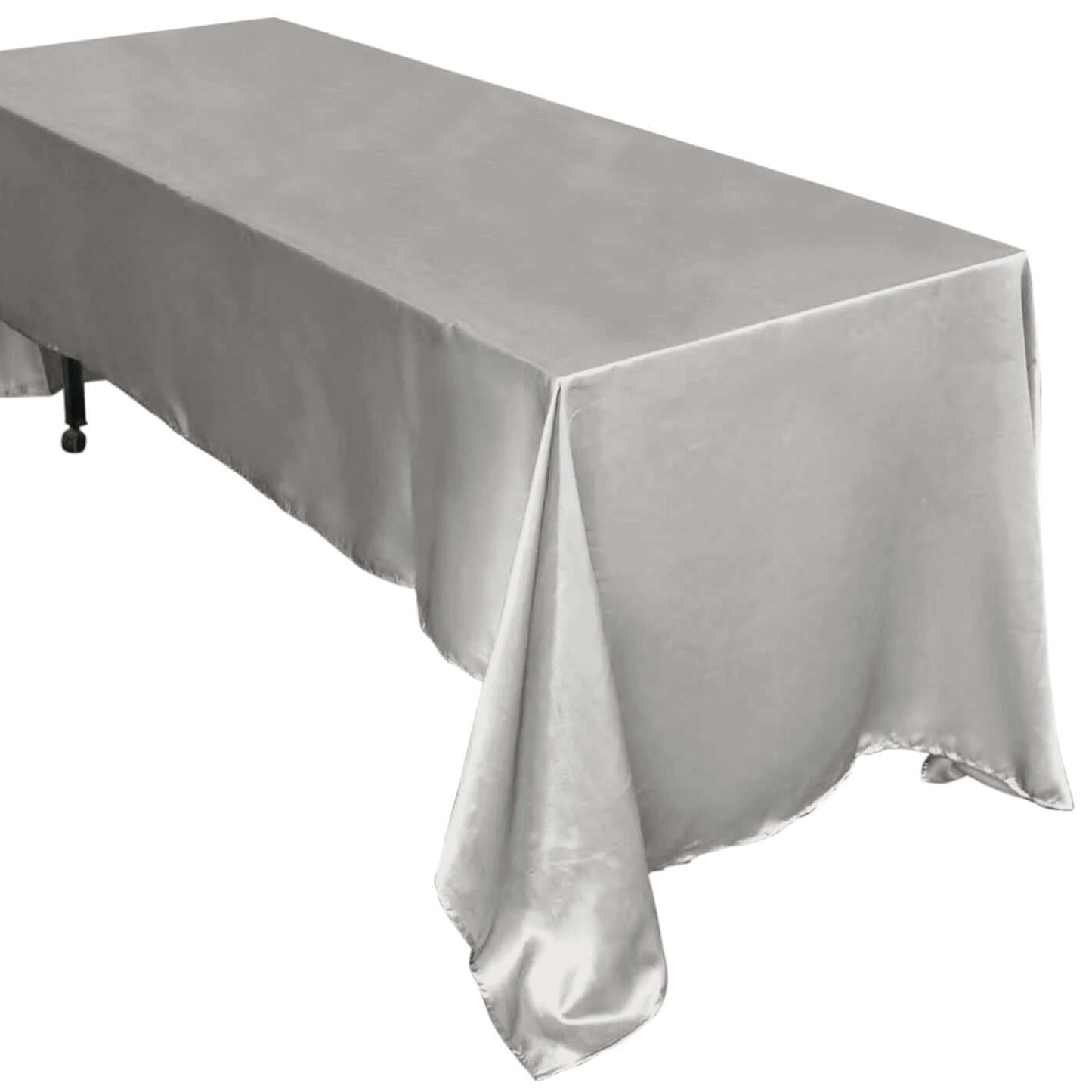 60"x126" Silver Seamless Satin Rectangular Tablecloth