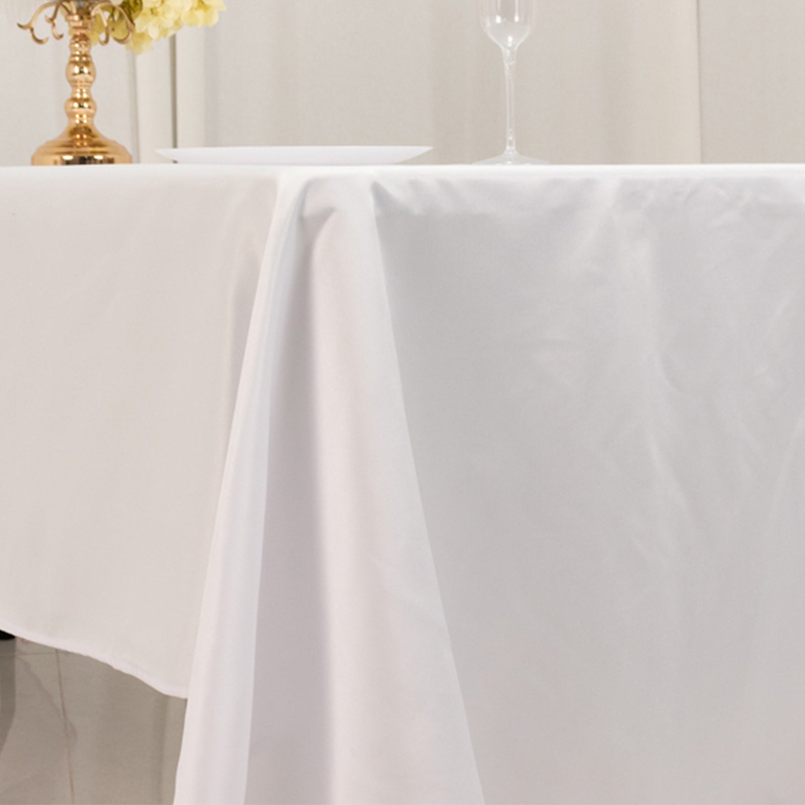 This satin tablecloth is more than just a table covering; it’s a key element in setting the mood of your event. Its soft white color can add a hint of romance to a wedding setup or serve as a warm, inviting foundation for a holiday meal. When styled with floral vases, candelabra, or our chic table accents, this tablecloth becomes the canvas for an unforgettable tablescape. Even when used with simple decor, its satin sheen and elegant color add a touch of class to the overall ambiance, making it the go-to choice for hosts who want a hassle-free yet stunning setup.