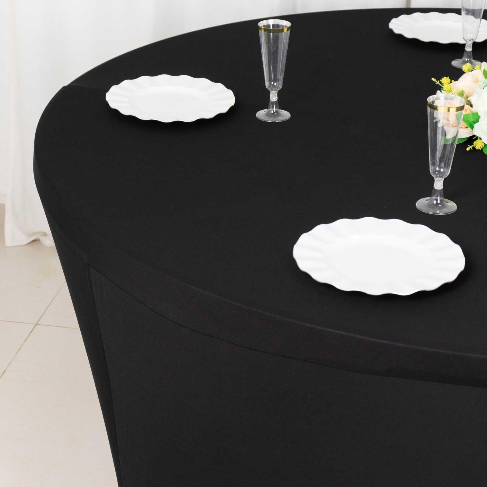 6ft Black Round Stretch Spandex Tablecloth Fitted Table Cover for 72 inch Tables