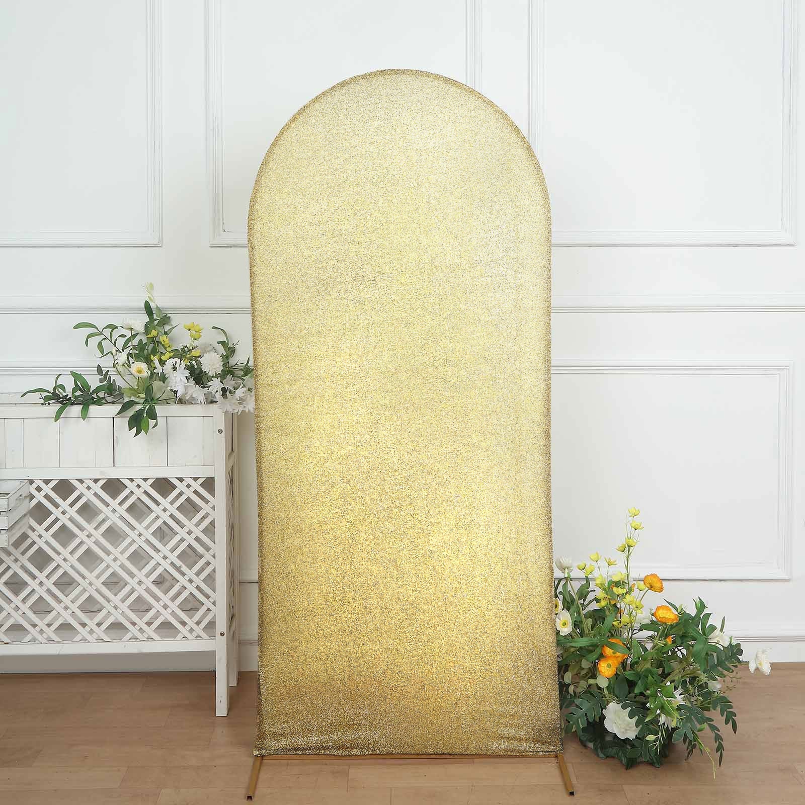 6ft Champagne Shimmer Tinsel Spandex Wedding Arch Cover For Fitted Round Top Chiara Backdrop Stand