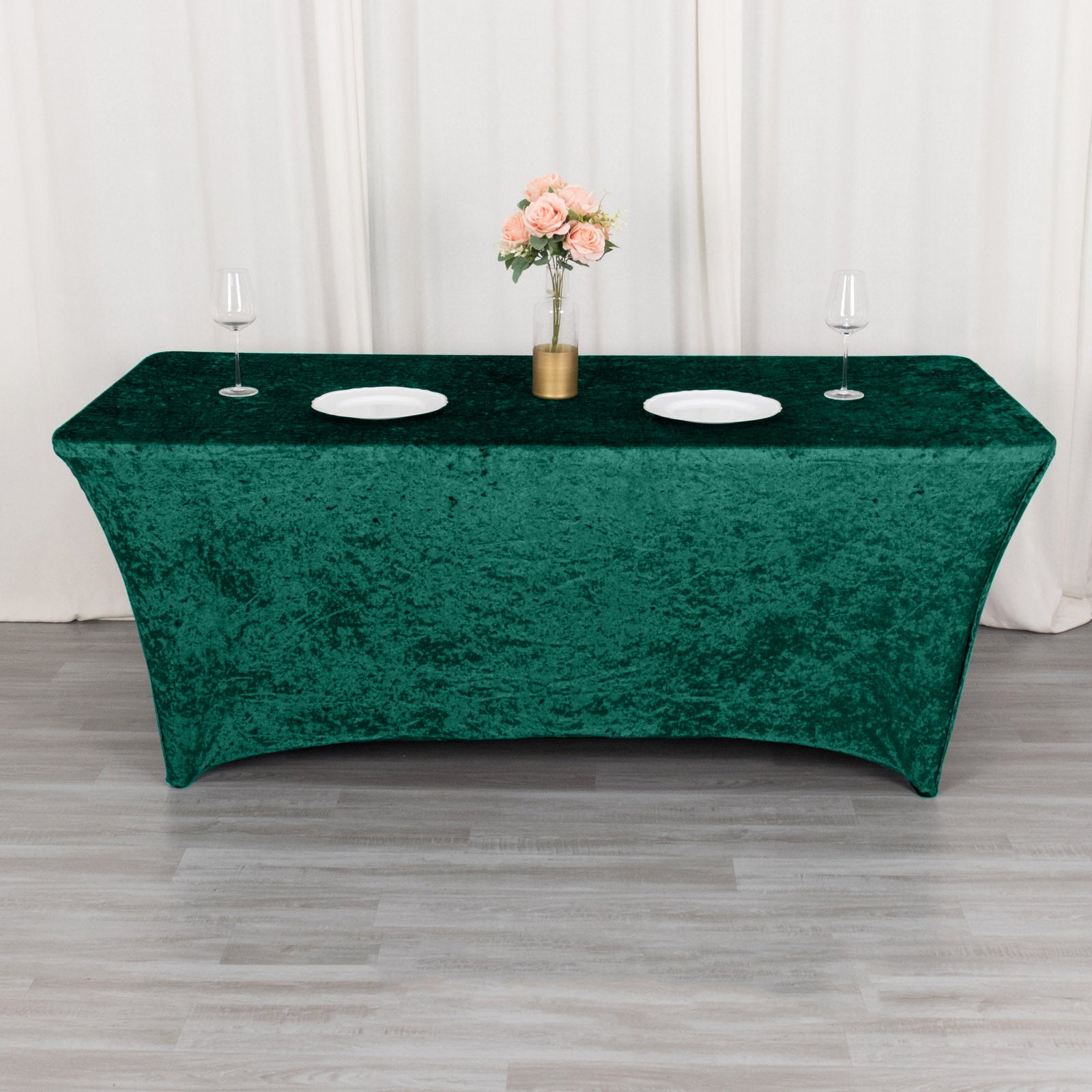 6ft Hunter Emerald Green Crushed Velvet Spandex Fitted Rectangular Table Cover