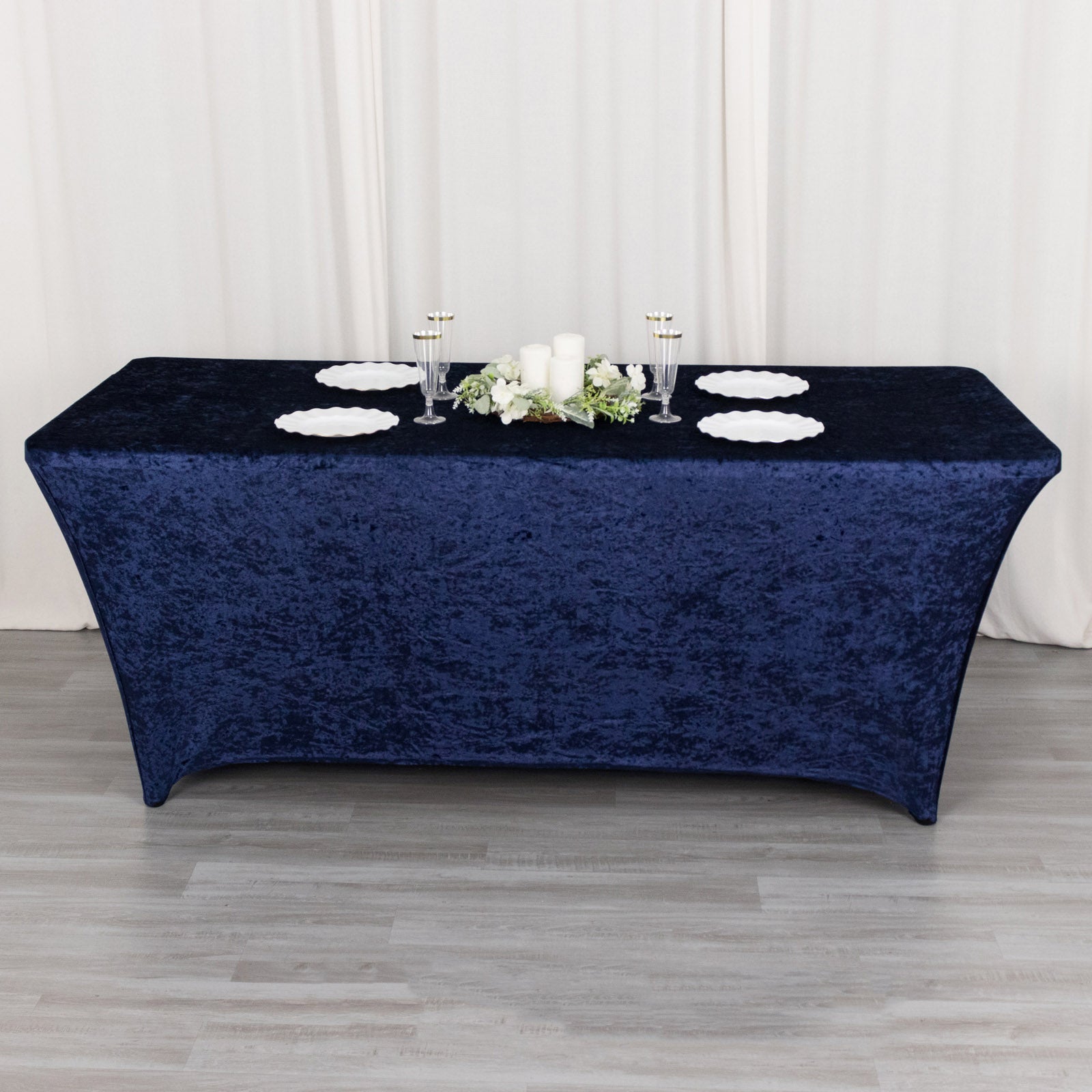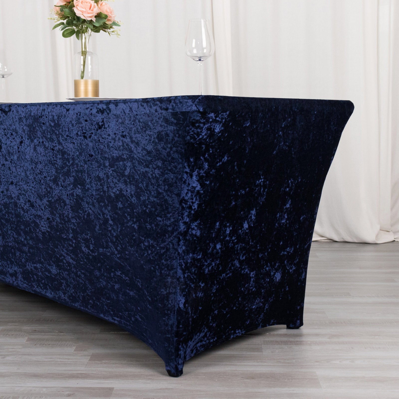 6ft Navy Blue Crushed Velvet Spandex Fitted Rectangular Table Cover
