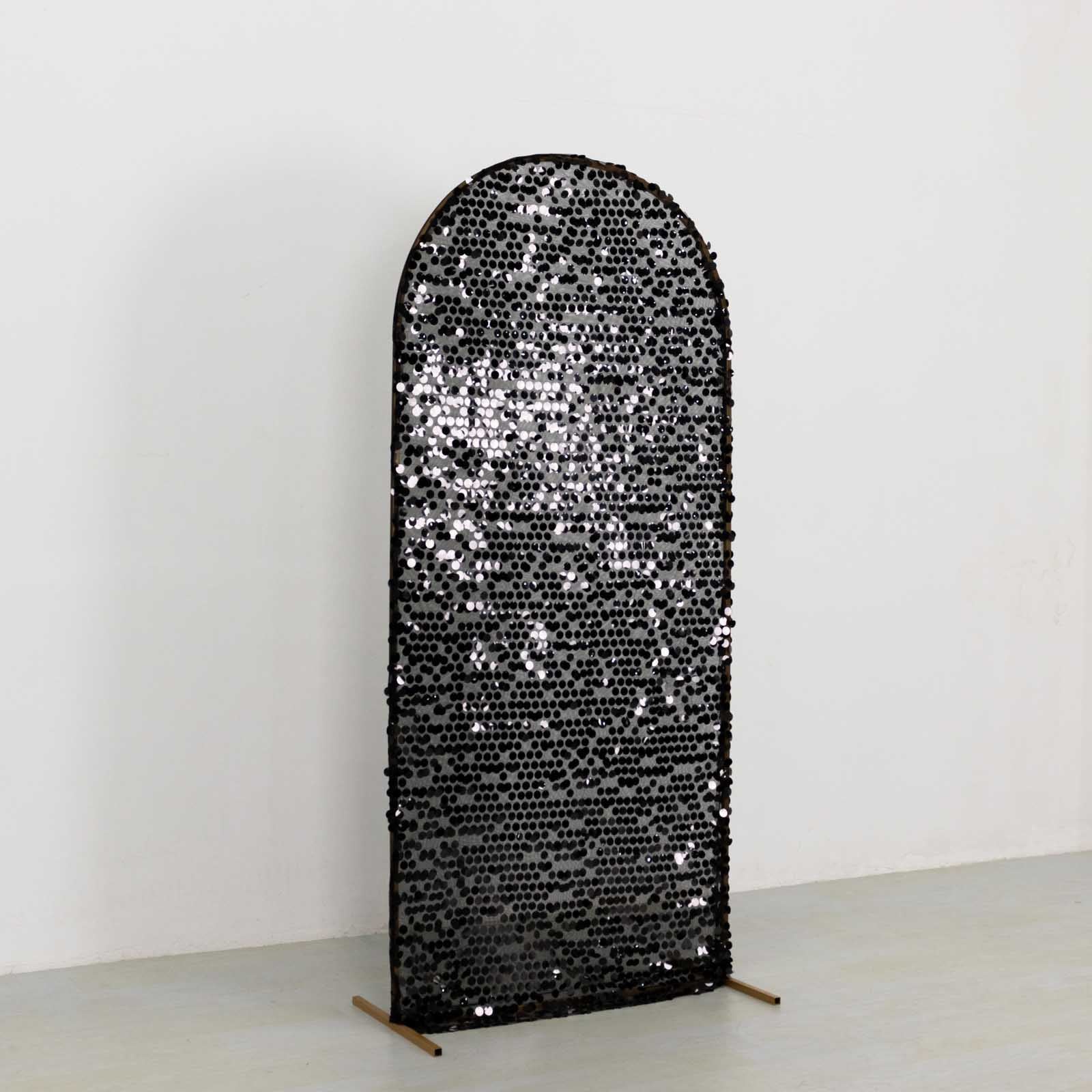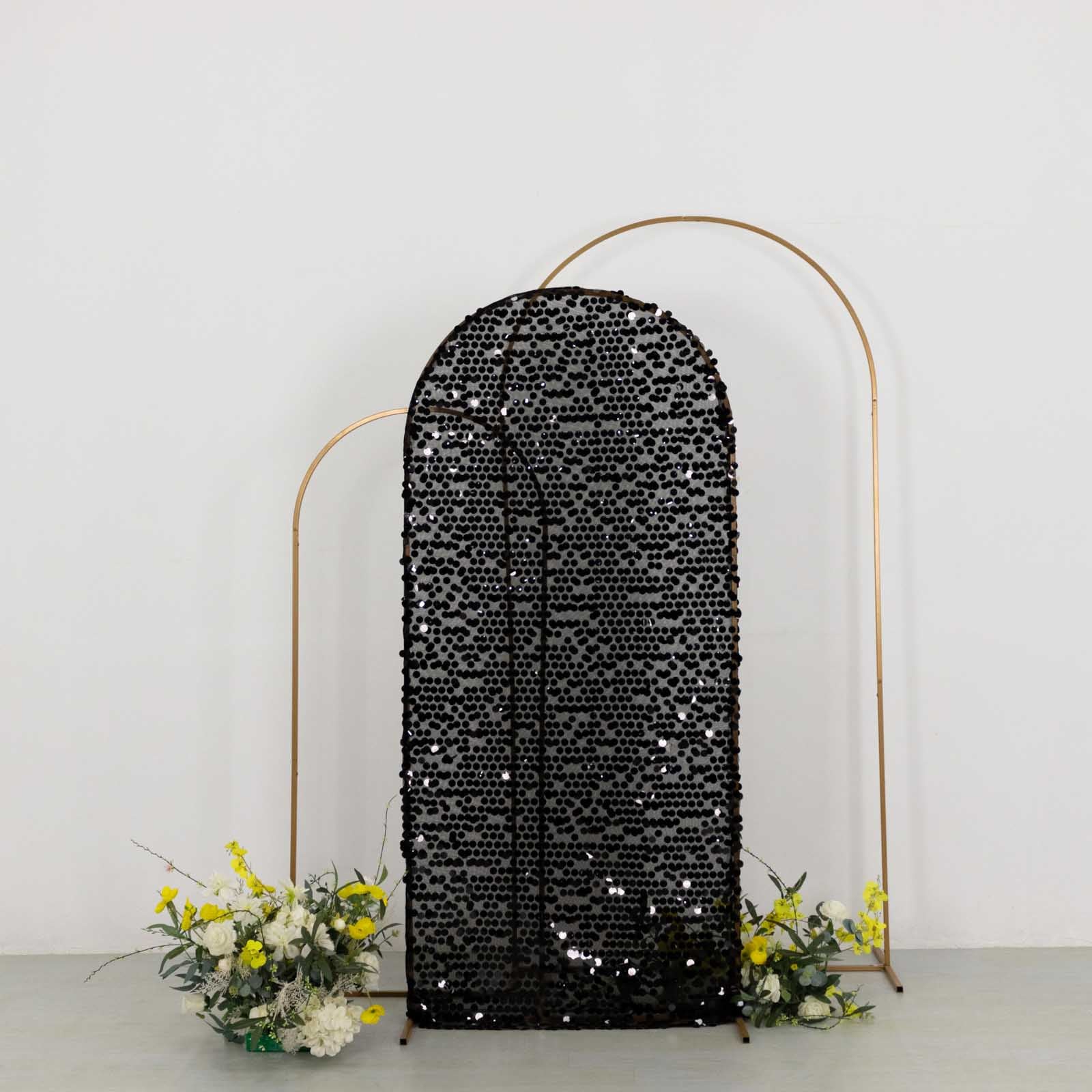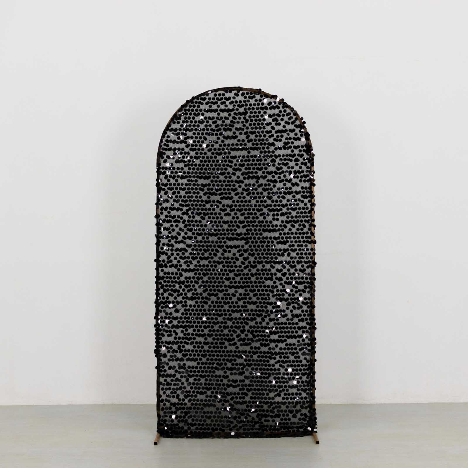 6ft Sparkly Black Big Payette Sequin Fitted Wedding Arch Cover for Round Top Chiara Backdrop Stand