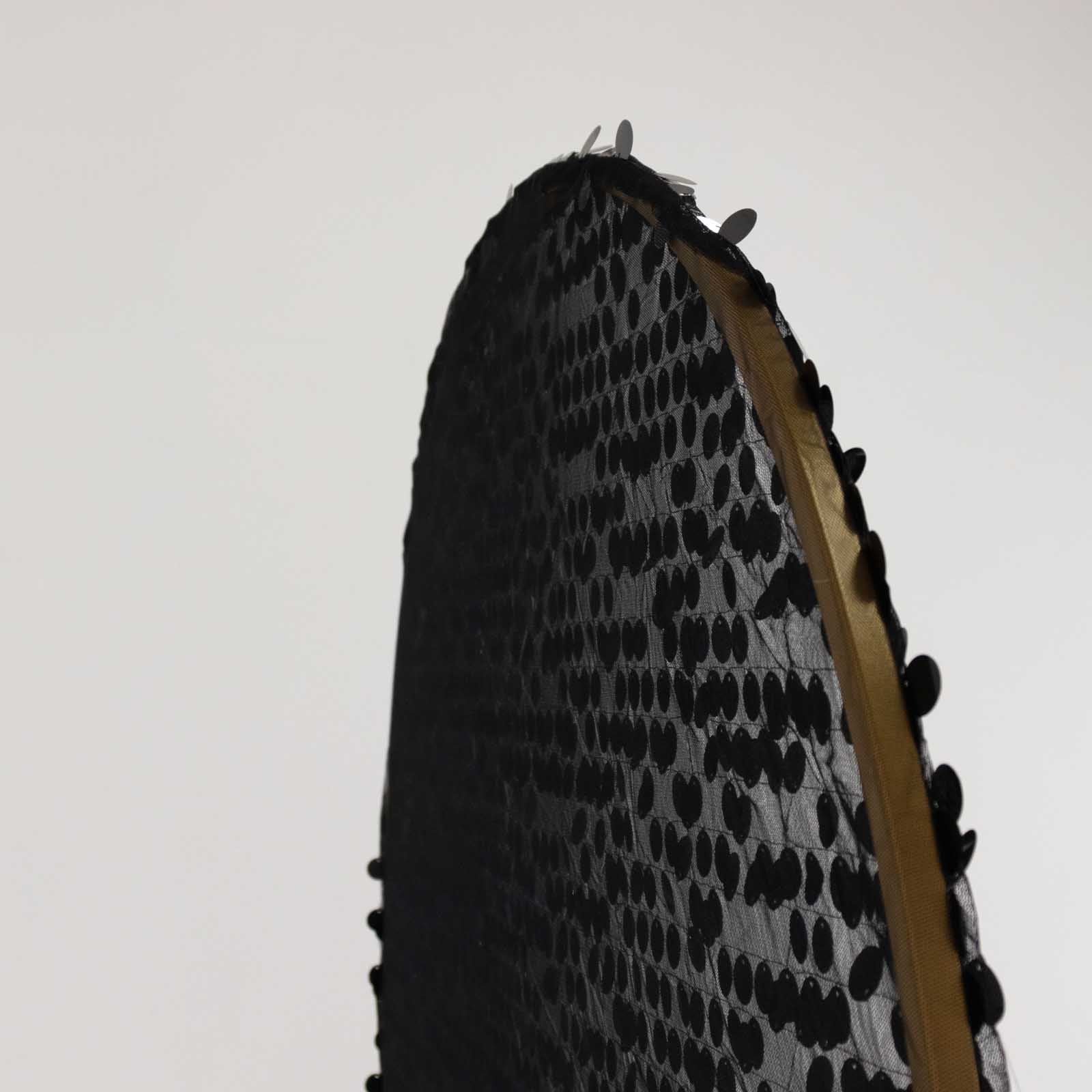 The Sparkly Black Big Payette Sequin Fitted Backdrop Cover adds glamour to any event. Designed for the Round Top Chiara Backdrop Stand, it fits perfectly. The cover is adorned with large payette sequins that shimmer and shine, creating a stunning visual impact.