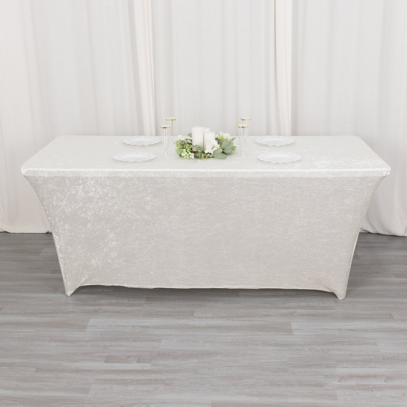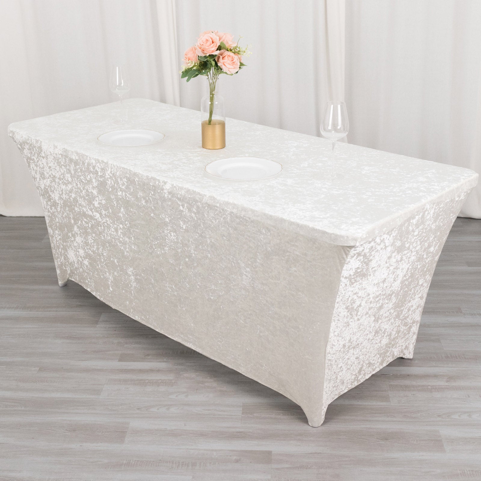 6ft White Crushed Velvet Spandex Fitted Rectangular Table Cover