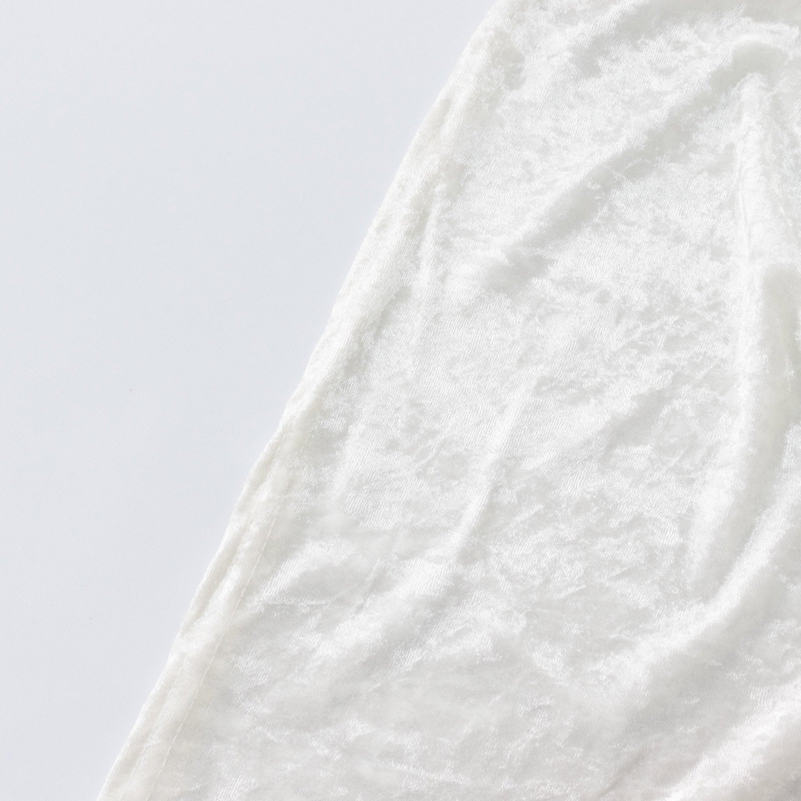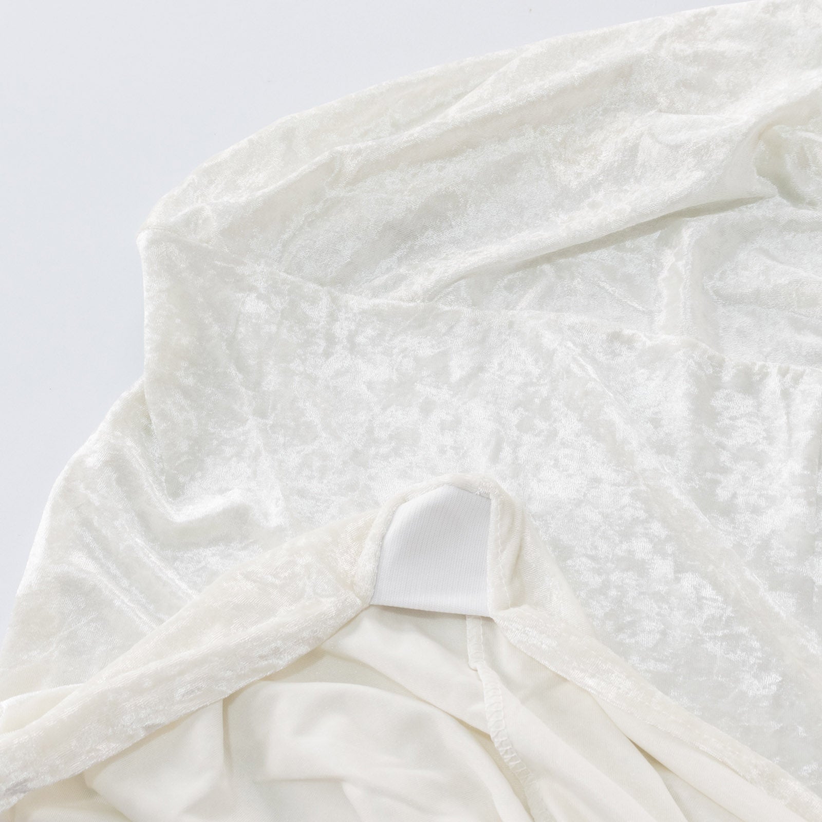 The 6ft White Crushed Velvet Spandex Fitted Rectangular Table Cover offers a luxurious feel. Its crushed velvet texture creates an elegant look, perfect for upscale events. This table cover enhances any table setting, making it ideal for weddings or formal gatherings.