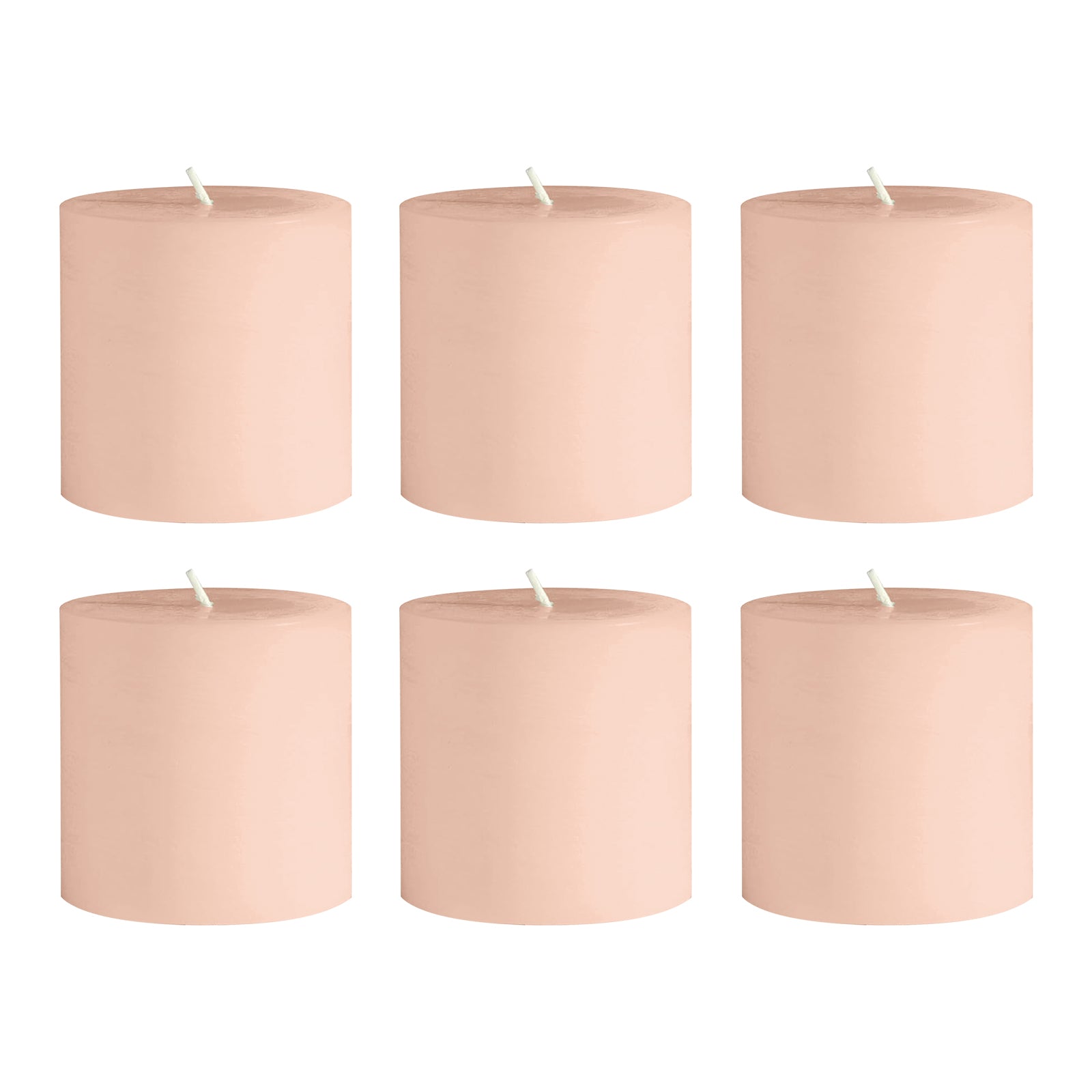 6-Pack Unscented Dripless Pillar Candles – 3"x3" Blush Paraffin Wax with Smokeless Cotton Wicks, Clean & Long-Lasting 30-Hour Burn