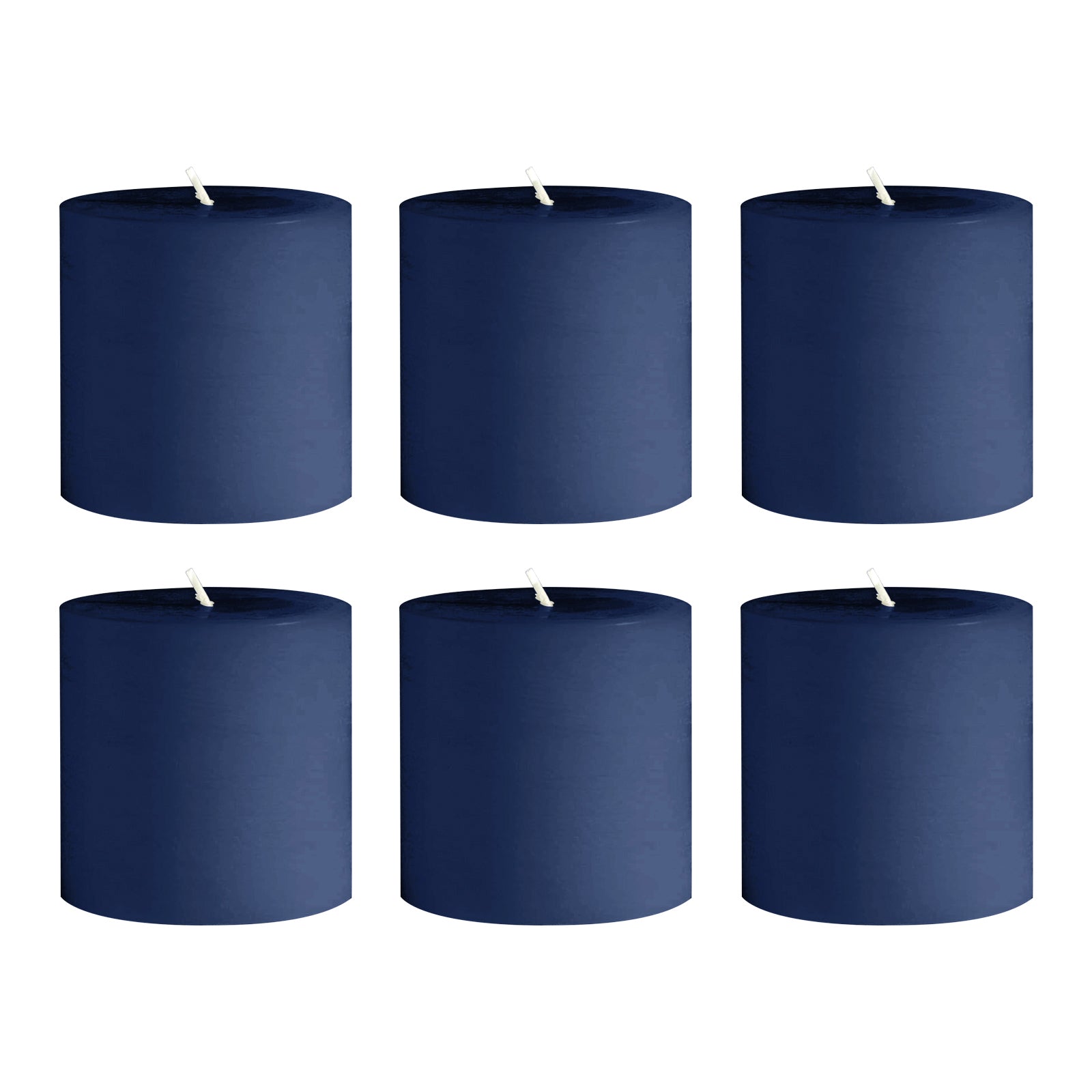 6-Pack Unscented Dripless Pillar Candles – 3"x3" Navy Blue Paraffin Wax with Smokeless Cotton Wicks, Clean & Long-Lasting 30-Hour Burn