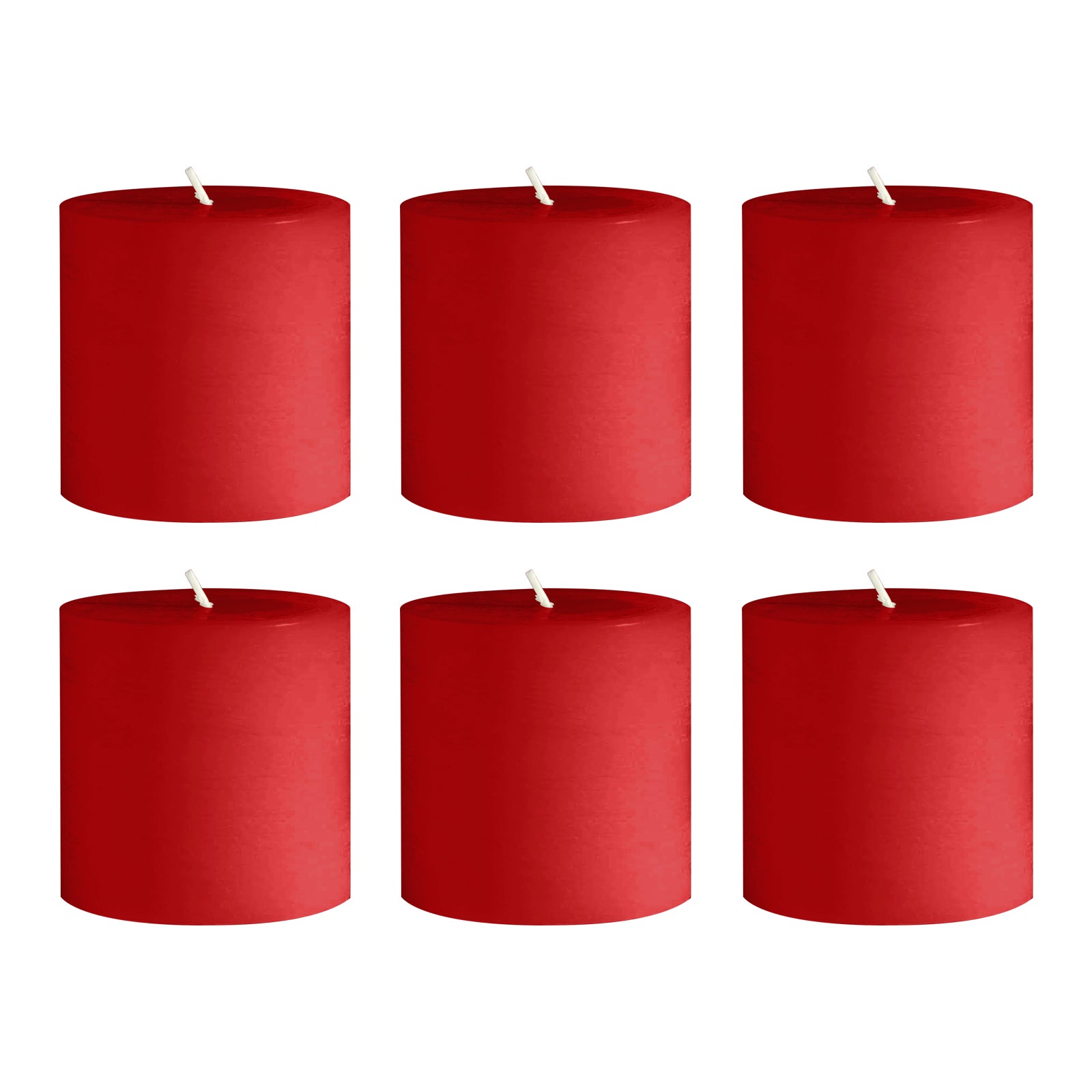 Striking and versatile, this 6-pack of 3"x3" unscented dripless Red pillar candles from TCFLinen adds energy to tabletops and décor vignettes. The paraffin-and-cotton blend offers a clean, smokeless burn that protects your Table Linens while delivering vivid color.