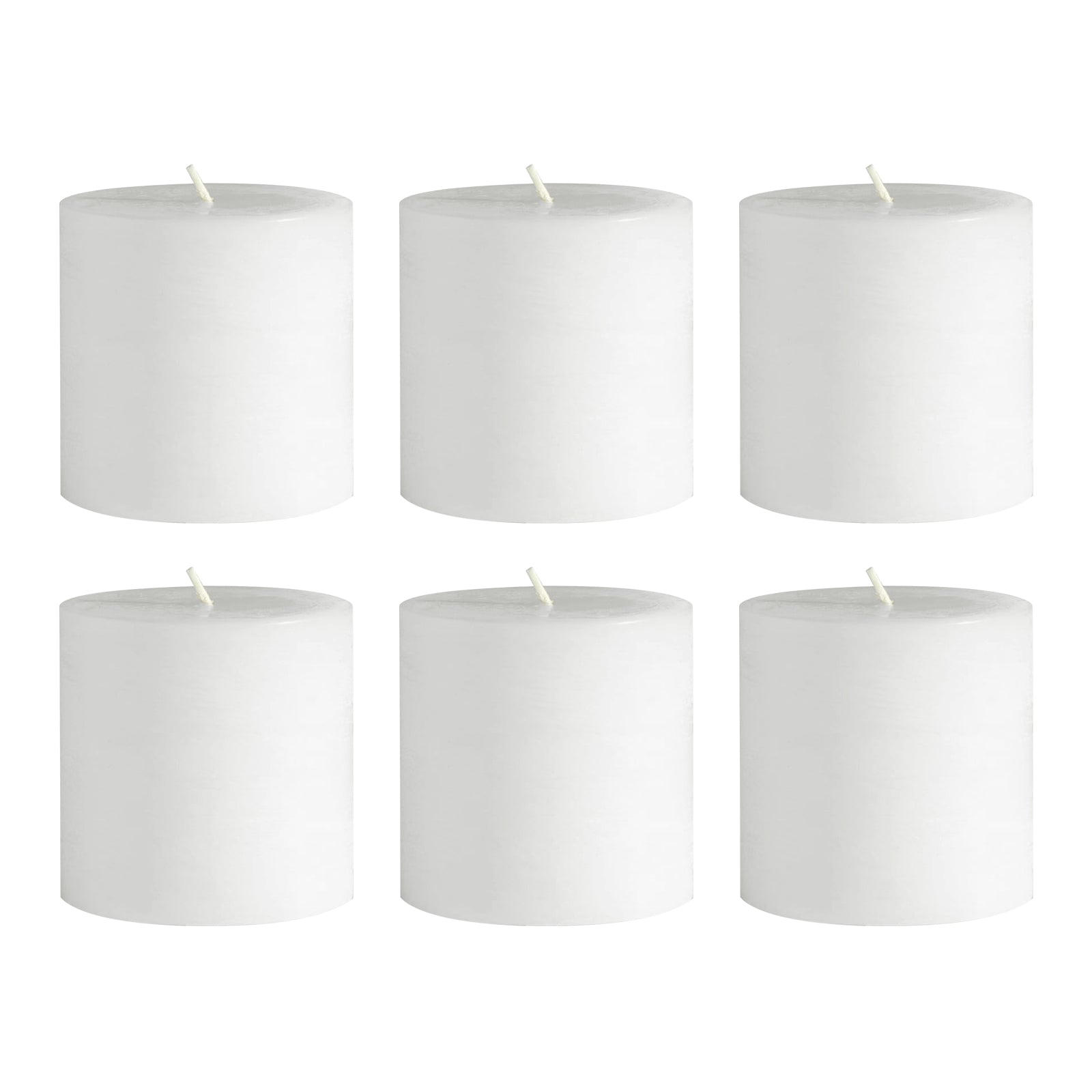6-Pack Unscented Dripless Pillar Candles – 3"x3" White Paraffin Wax with Smokeless Cotton Wicks, Clean & Long-Lasting 30-Hour Burn