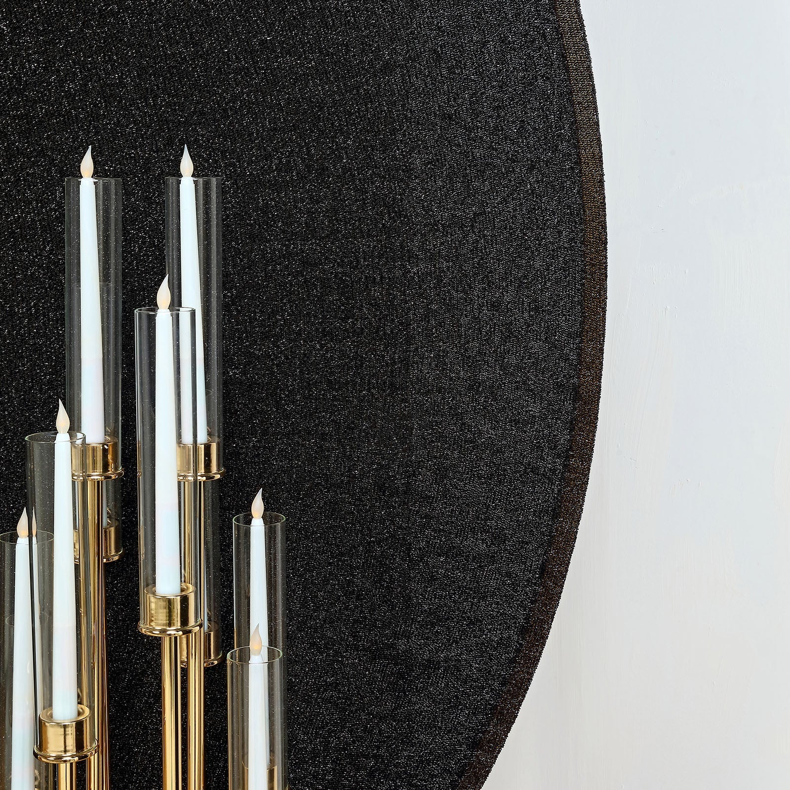 7.5ft Black Metallic Shimmer Tinsel Spandex Round Backdrop, 2-Sided Wedding Arch Cover