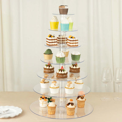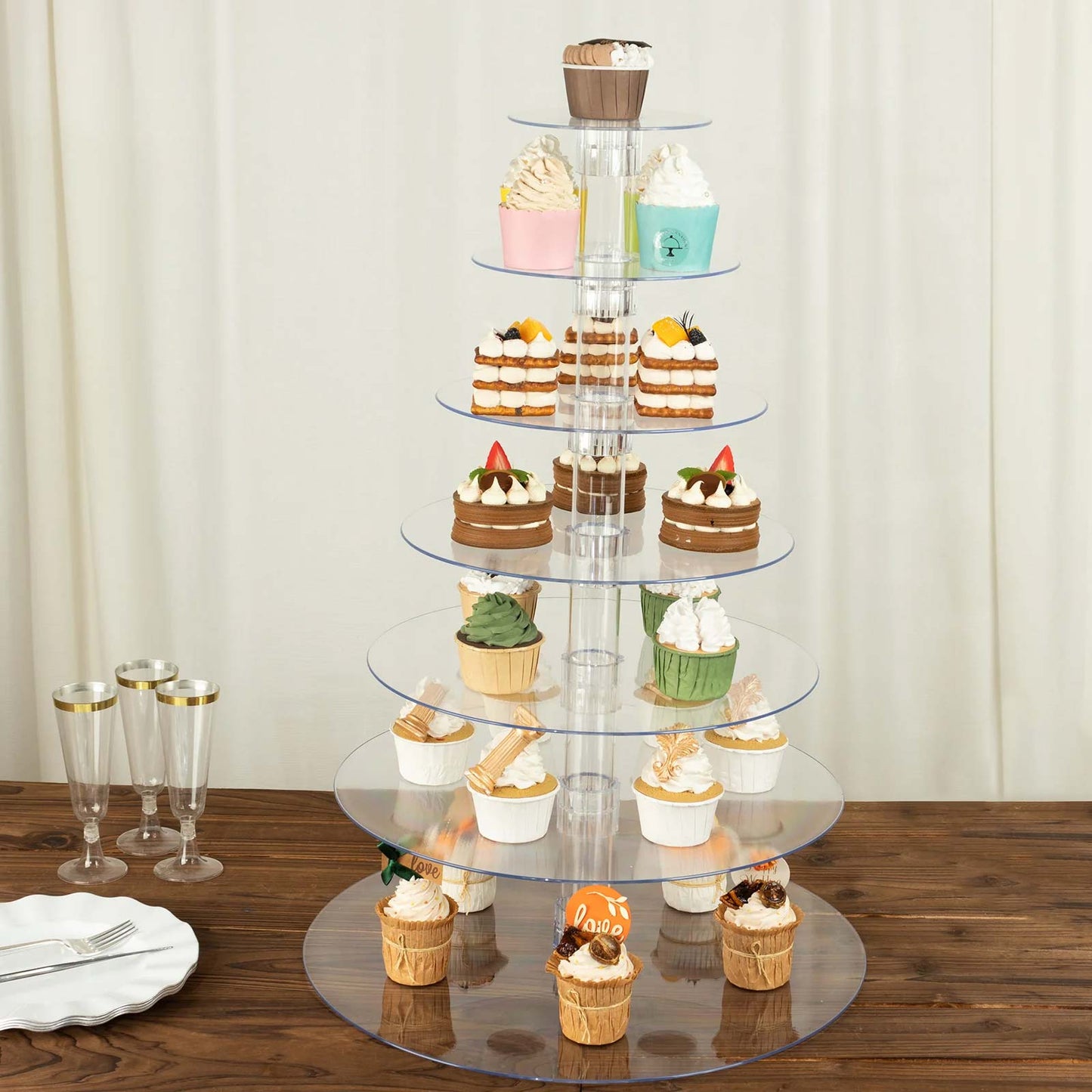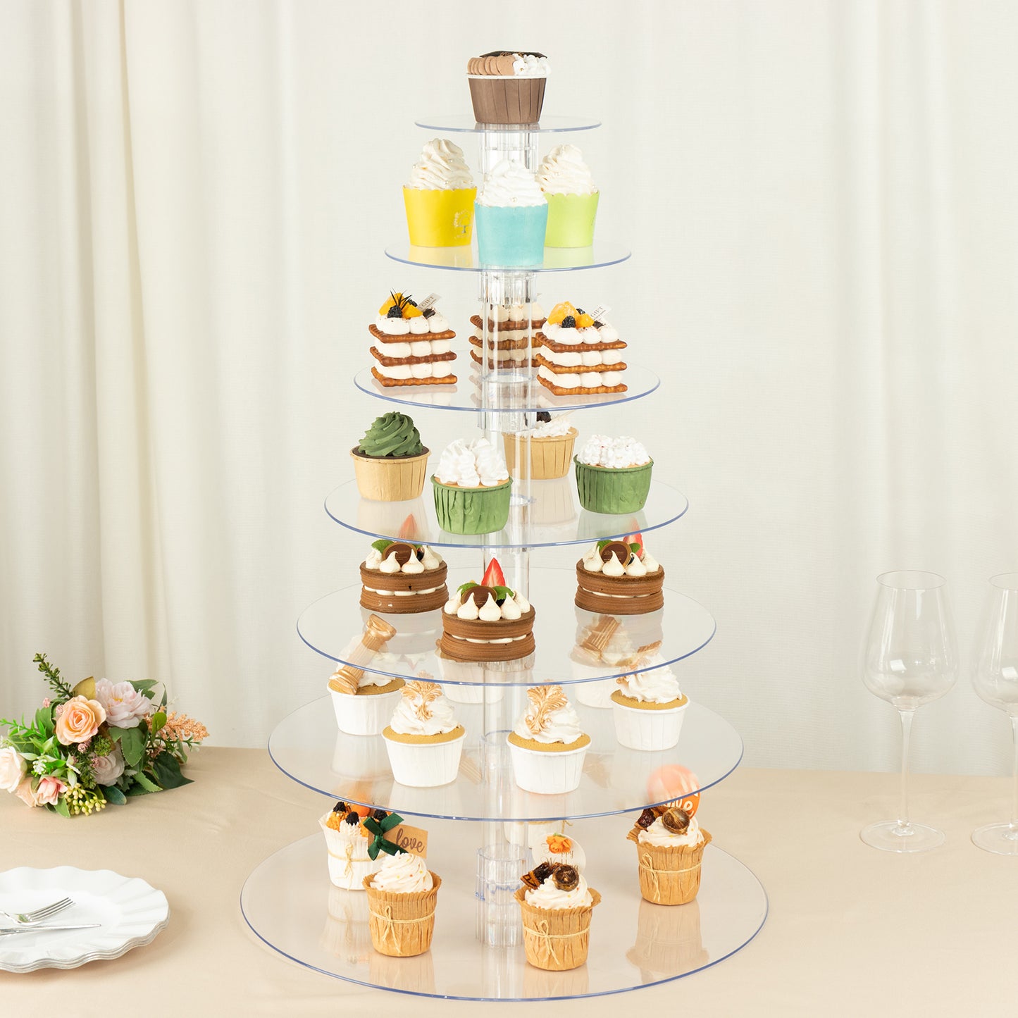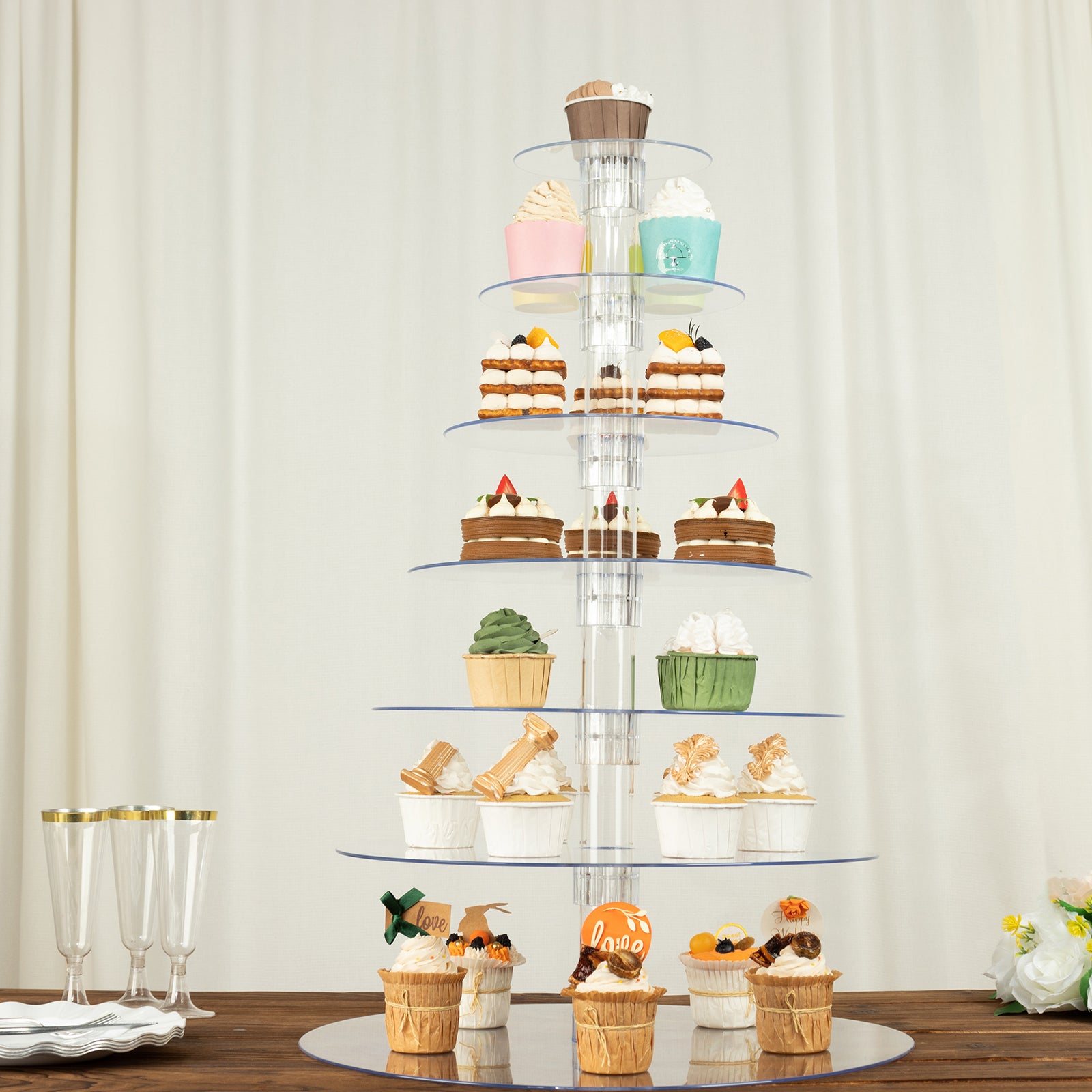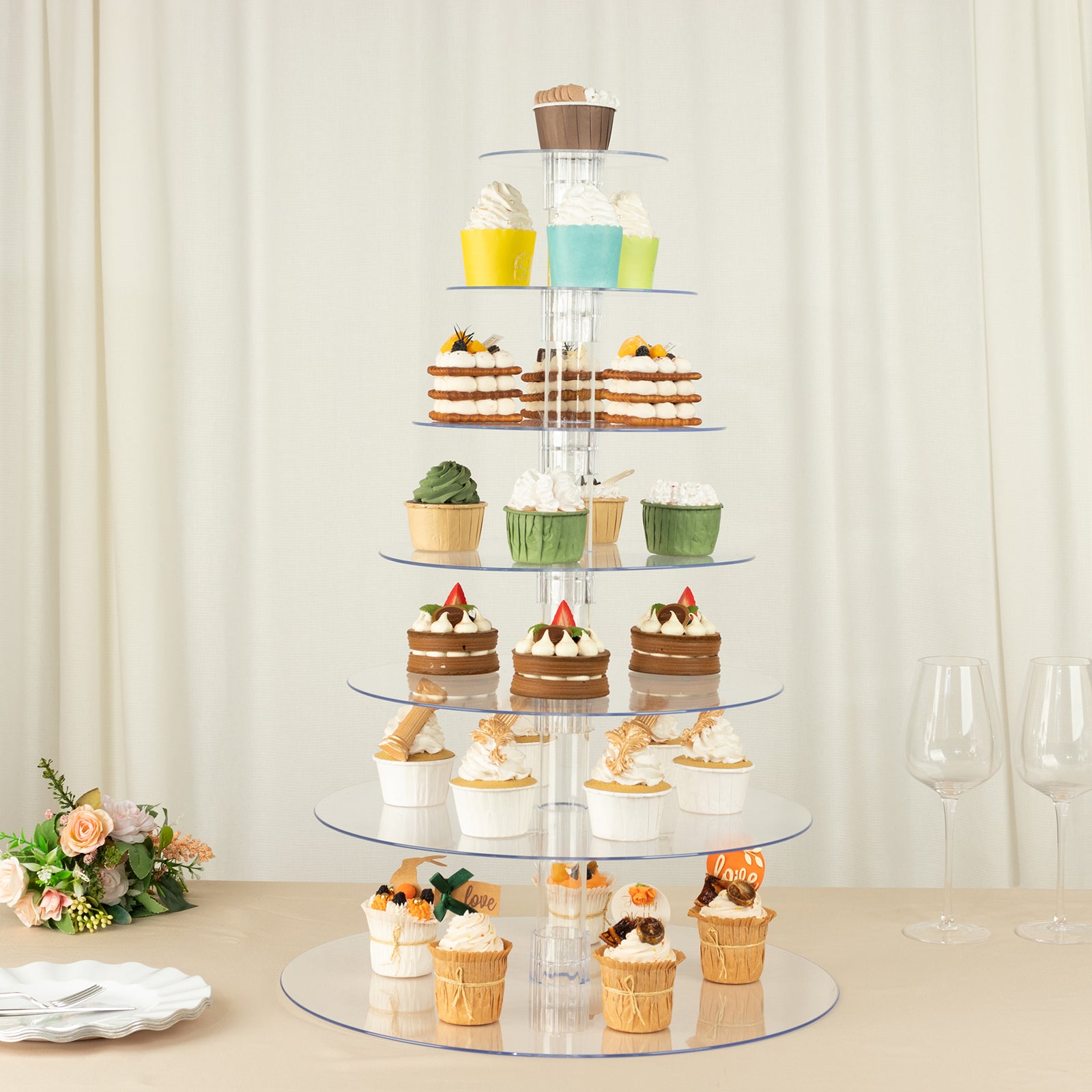 7-Tier Clear Round Acrylic Cupcake Tower Stand, Heavy Duty Cake Stand Dessert Display with Film Sheets - 26" Tall
