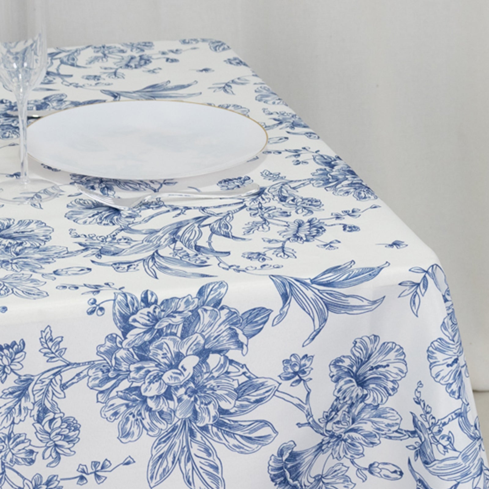 70"x70" White Blue French Toile Polyester Square Tablecloth, Floral Table Cloth for Dining Tables