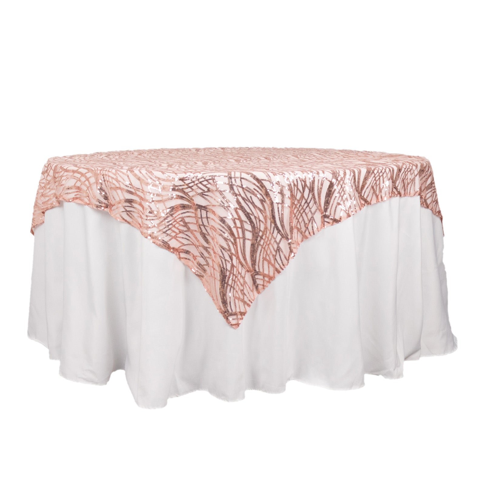 72"x72" Blush Wave Mesh Square Table Overlay With Embroidered Sequins