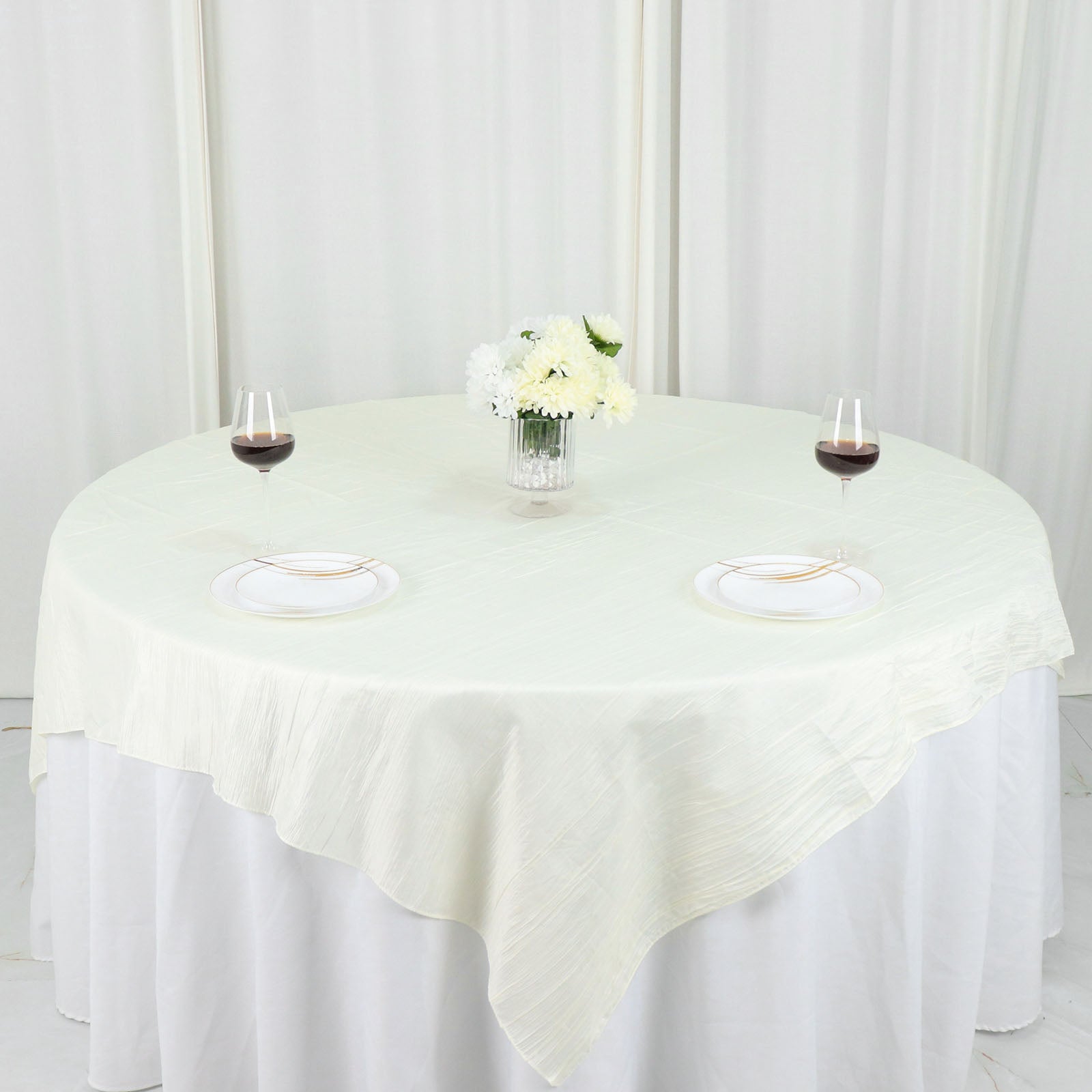 72"x72" Ivory Accordion Crinkle Taffeta Table Overlay, Square Tablecloth Topper